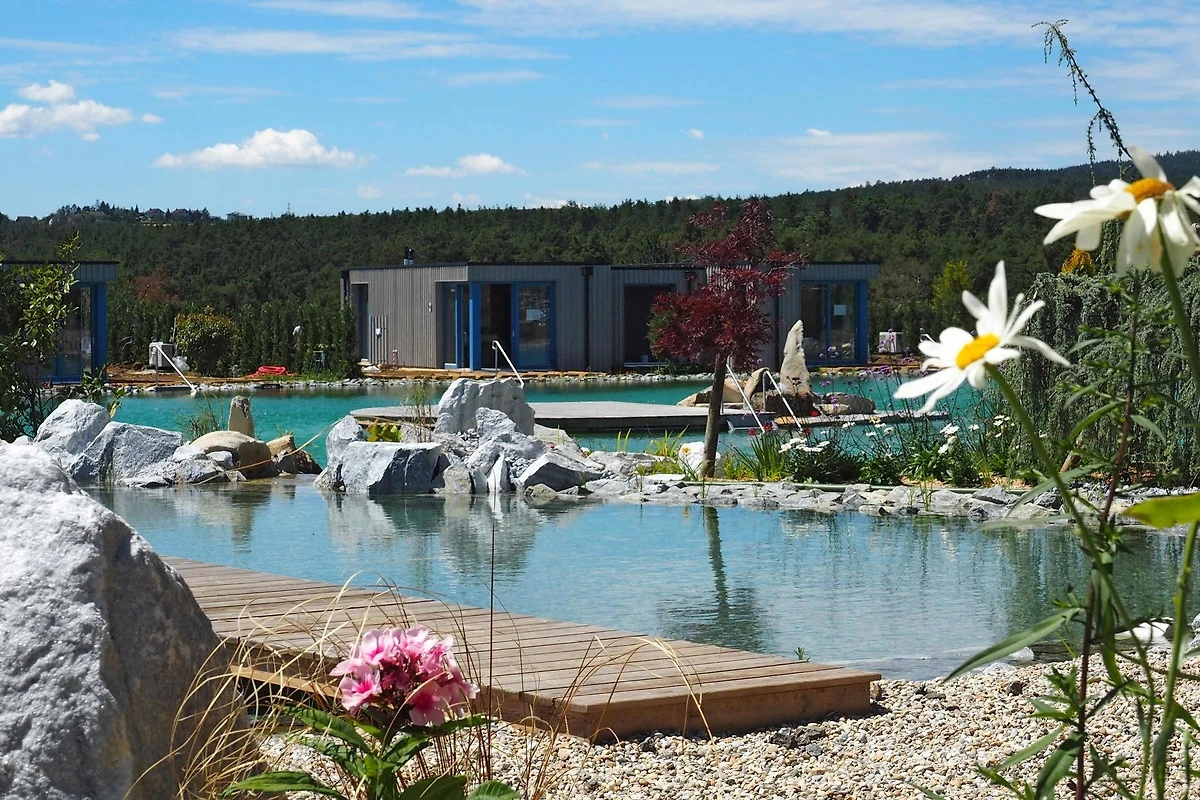 Die Villas direkt am Gartensee bestechen durch ihren maritimen Einfluss. Die Holzriegelbauten sind ökologisch und nachhaltig und erzeugen ein besonders angenehmes Raumklima. Die weissen Holzräume in Kombination mit den Pastelltönen des Interieurs sind lichtdurchflutet und modern. Unsere Villas verfügen über einen gemütlichen Wohnbereich mit 43 Zoll TV, ein Schlafzimmer mit Doppelbett, sowie ein Bad mit Regendusche und getrennter Toilette. Die Küche ist mit einem 2 flammigen Herd, Mikrowelle mit Heissluft und Grillfunktion, Kühlschrank samt Gefrierfach, Geschirrspüler, Kaffeemaschine, Wasserkocher, hochwertigem Geschirr, Weingläsern ausgestattet. Lassen Sie auf der Terrasse mit Grillmöglichkeit direkt am Gartensee die Seele baumeln und vergessen Sie den Stress des Alltags. Der private Themengarten im englischen, asiatischen oder toskanischen Stil gestaltet, lässt Gartenträume wahr werden. Entspannen Sie in der privaten Sauna oder heissen Badewanne unter freiem Himmel.