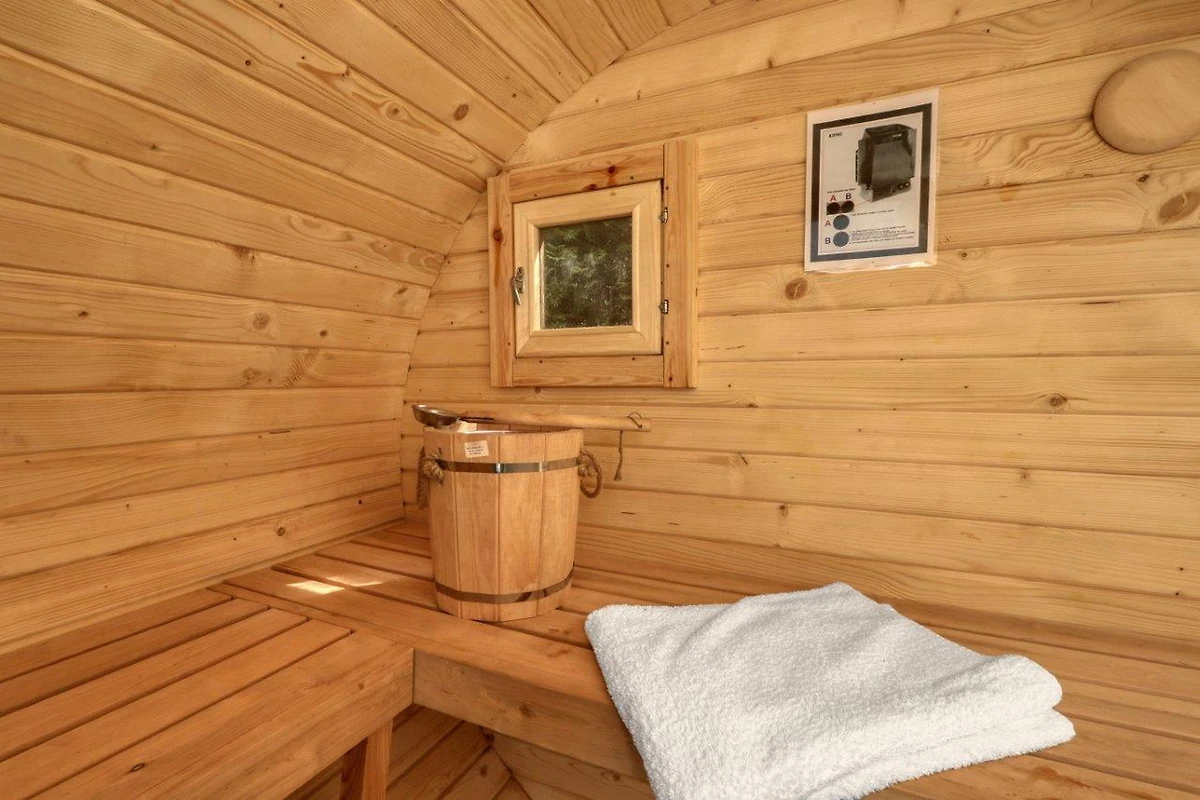 Auf der Terrasse steht Ihnen ein Grillkamin für gemütliche Abende zur Verfügung. Von der Terrasse betreten Sie die Sauna, wo Sie jederzeit ungestört entspannen können.