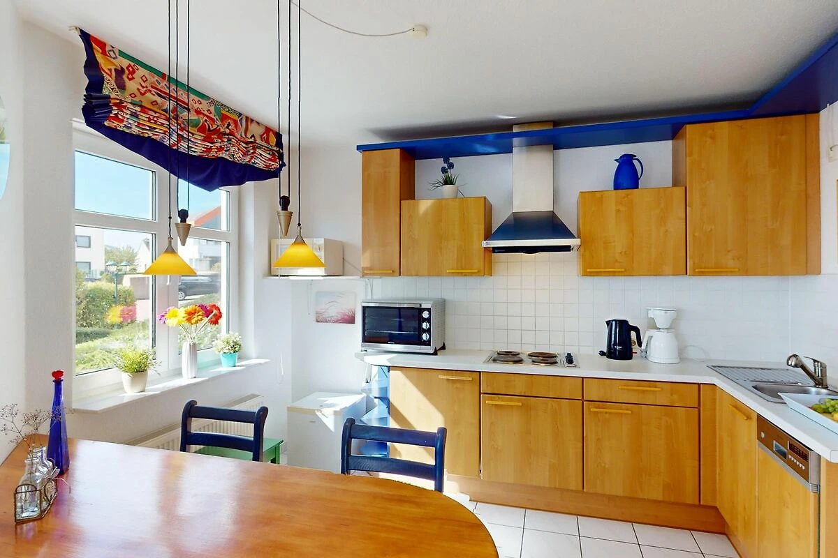 Diese Ferienwohnung können wir absolut weiterempfehlen. Die Wohnung ist sehr gepflegt und gemütlich eingerichtet. Vor allem was die Küchenuten- silien betraf, hier war alles in ausreichender Menge vorhanden,vom Eier- kocher bis hin zum Handmixer. Besonders schön war auch, dass die Wohnung einen Balkon und eine Terrasse hatte. Die Wohnung ist über zwei Ebenen, die Schlafzimmer im unteren Bereich, sodass einem keiner über den Kopf rumtrampelt.