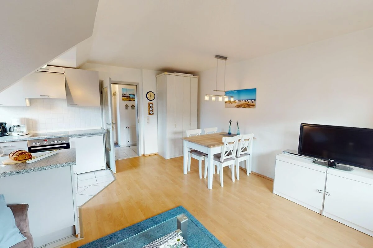 Das strandnahe, 40m² große 2-Zimmer Apartment befindet sich im 1. OG der Deich-Residenz. Es ist für eine Belegung mit 2 Erwachsenen und max. zwei Kindern bis 12 Jahre ausgelegt. Privates Parken auf dem wohnungseigenen Stellplatz.