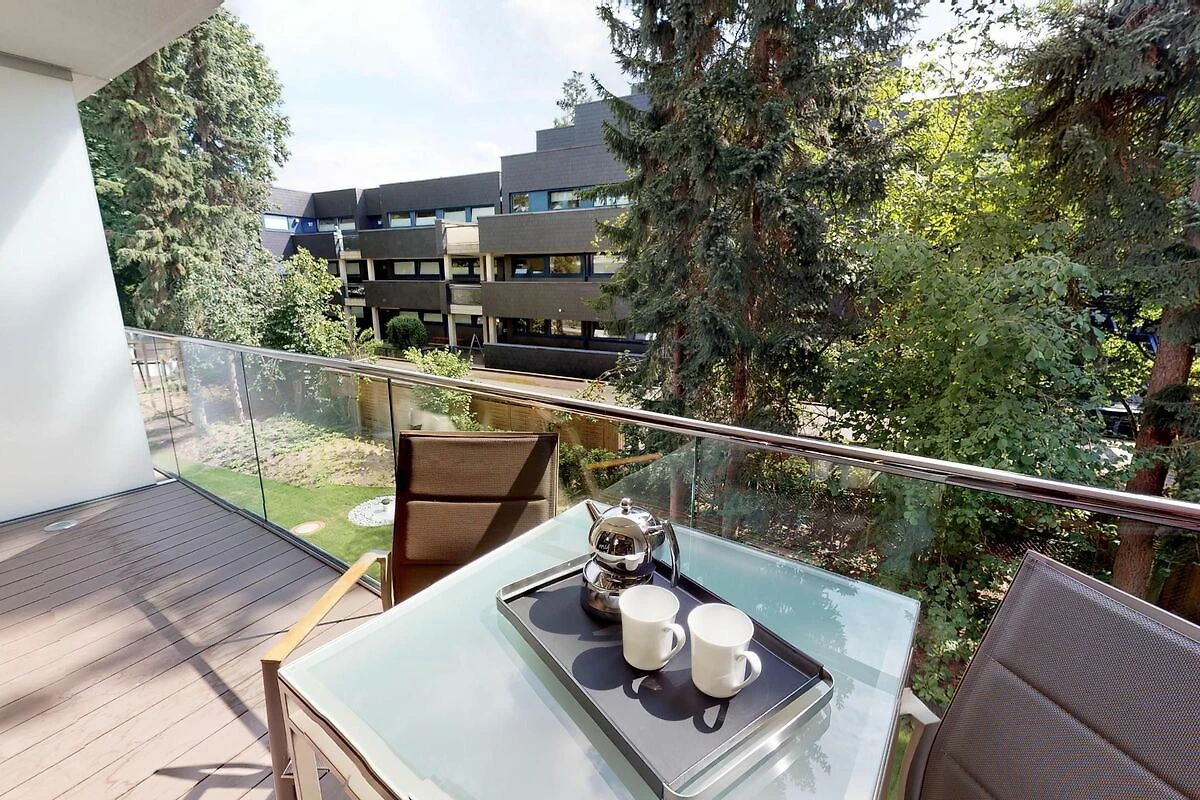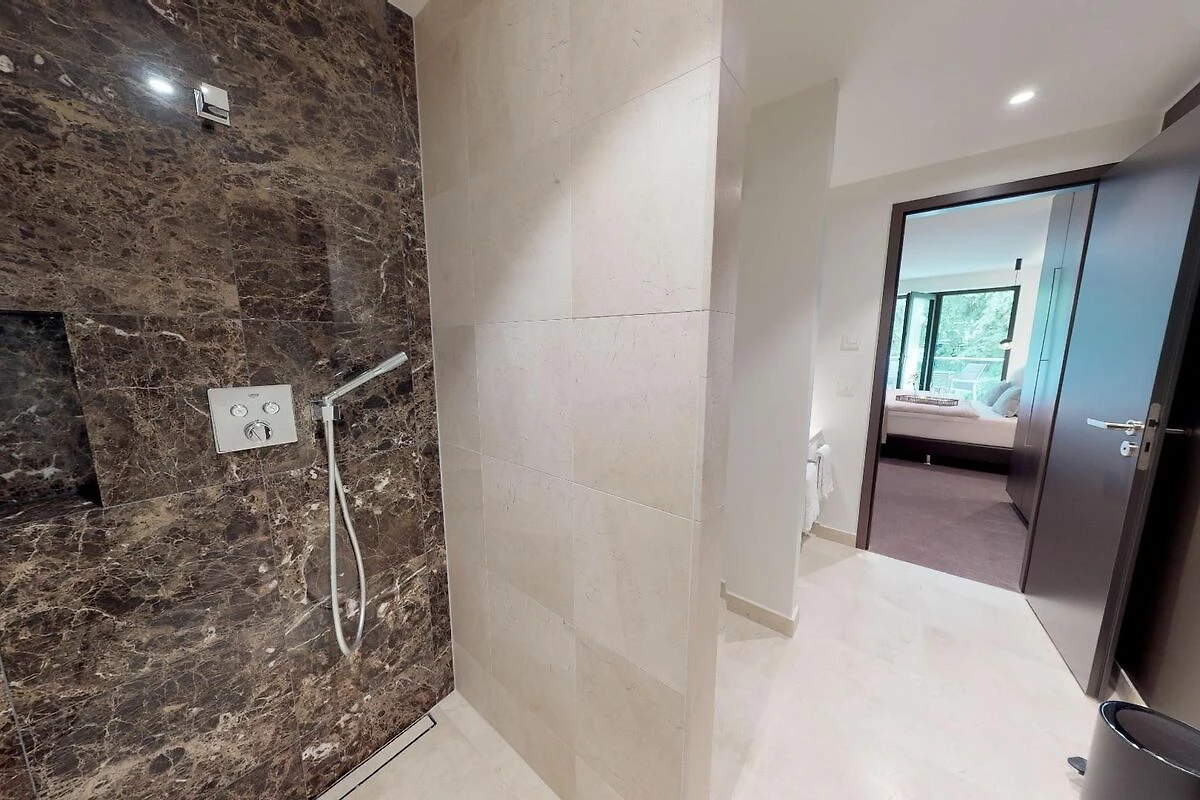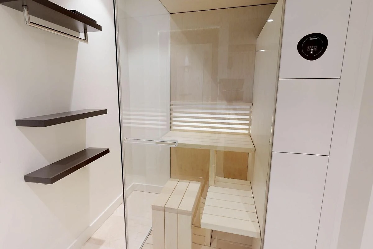 Highlights der Suite sind die eigene kleine Sauna (1,17m × 1,17m) sowie der möblierte Balkon, der zu entspannten Stunden an der frischen Luft einlädt! Zur Wohnung gehört ein Tiefgaragenstellplatz.