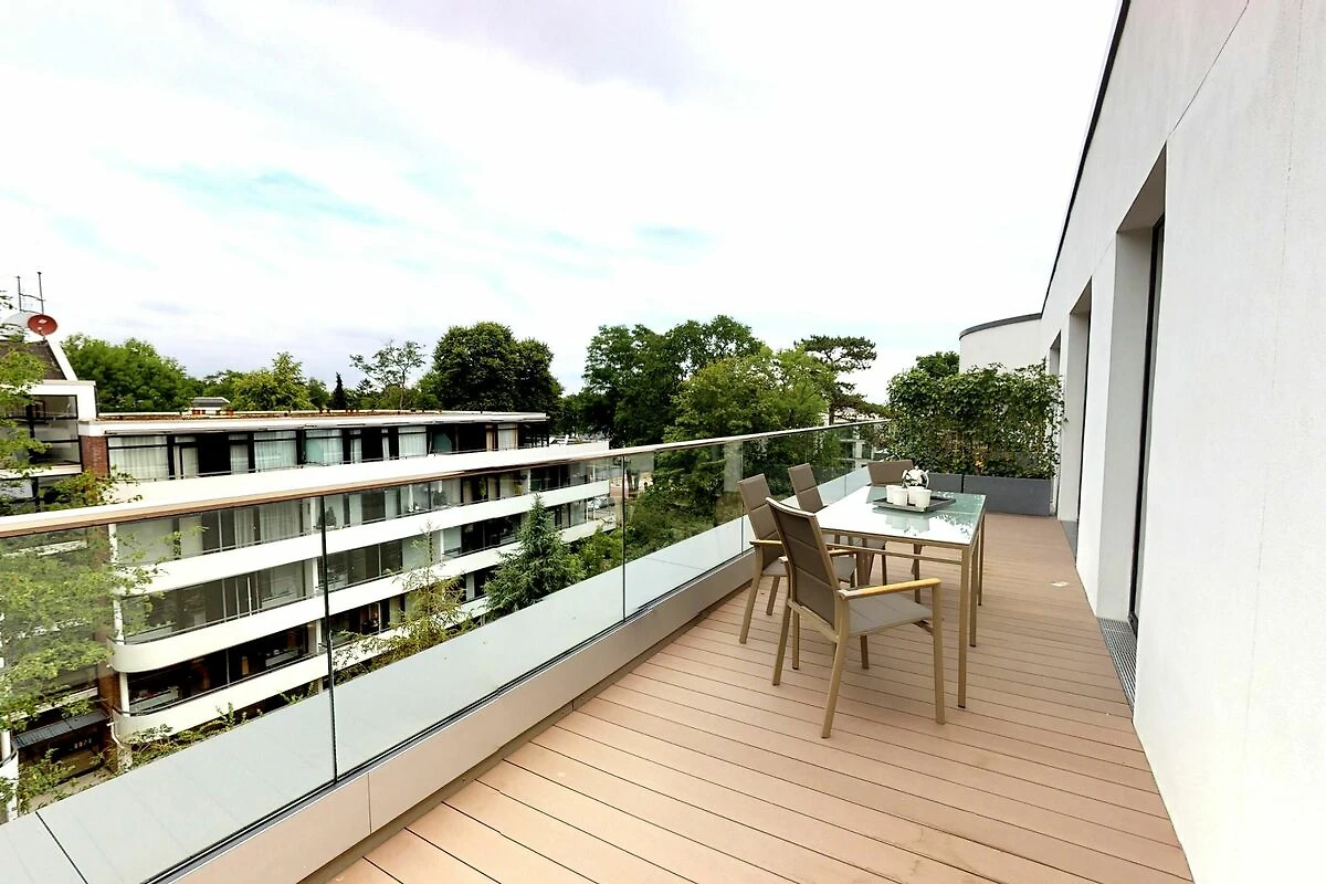 Zu den Highlights des Penthouses gehören eine eigene, gläserne Sauna (2,37m x 1,19m) sowie der herrliche, möblierte Balkon mit Strandkorb, der zu entspannten Stunden an der frischen Meeresluft einlädt. Zur Wohnung gehört ein Tiefgaragenstellplatz. Diese Wohnung ist barrierefrei gemäß der LBO. Unsere Appartements in der obersten Etage sind über die gemeinschaftliche Dachterrasse zu erreichen.