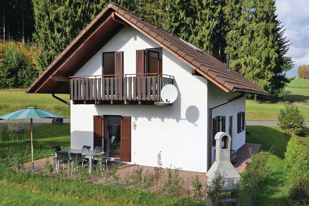 Von dem Balkon aus können Sie die Aussicht in den Wald und die Landschaft vom Hessischen Bergland geniessen.