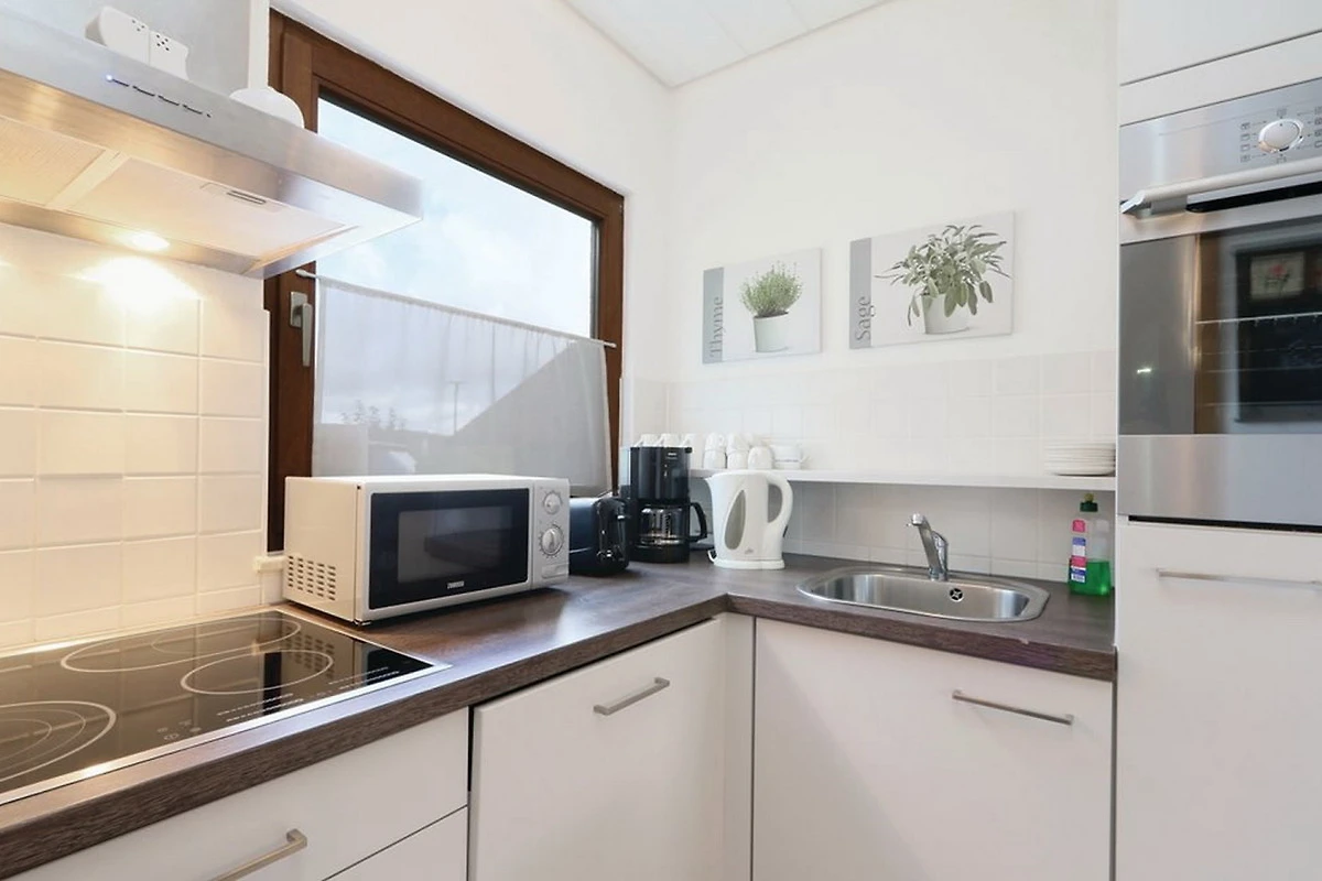 In der angrenzenden vollausgestatteten Küche finden Sie alles für die Realisierung Ihrer eigenen Kochideen.