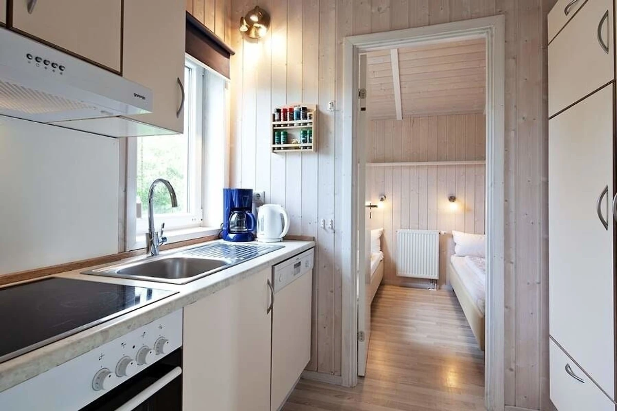 Die Küche ist mit Kühlschrank, Spülmaschine, Kaffeemaschine, Wasserkocher, Herd etc. ausgestattet.