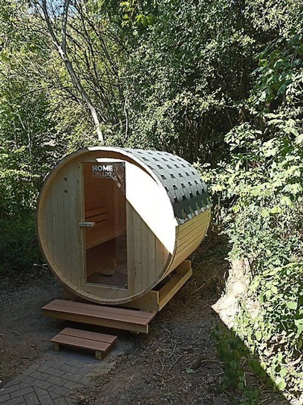 • Private Fasssauna im Garten