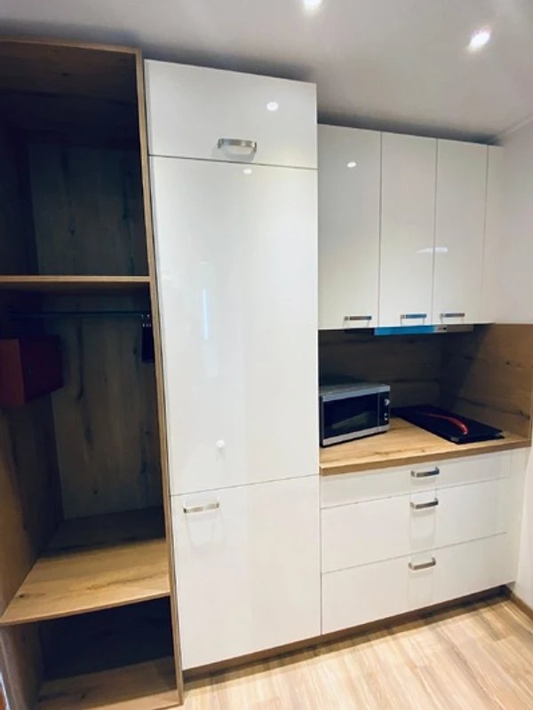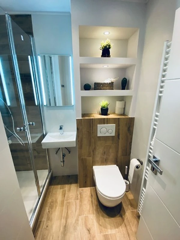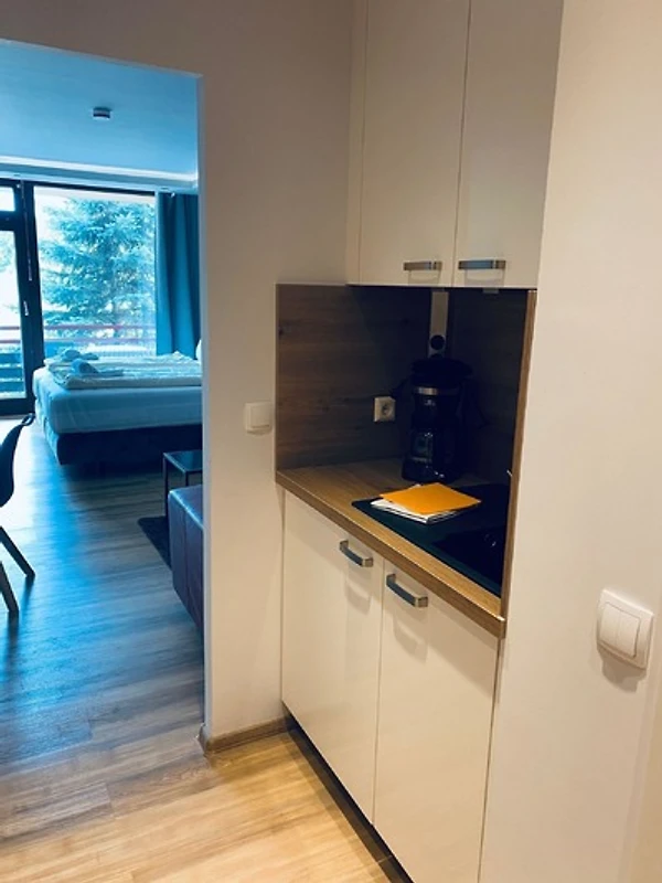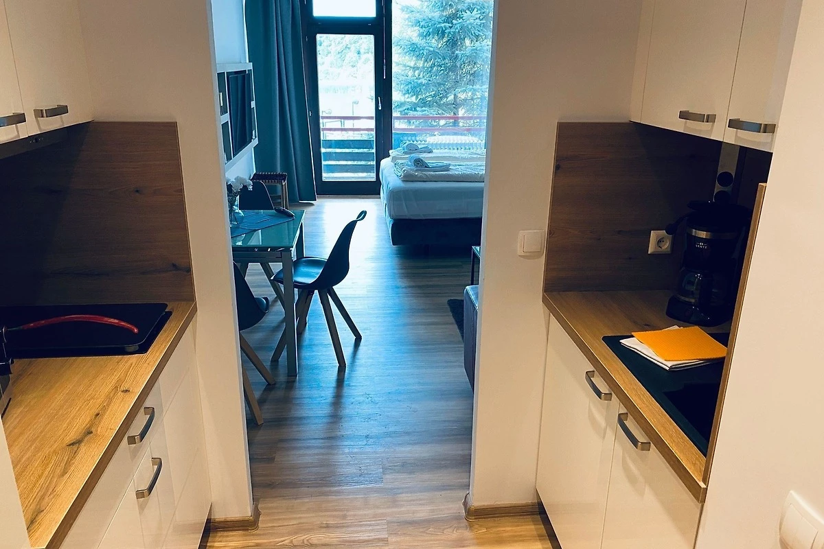 Die Ferienwohnung bietet eine moderne und komfortable Ausstattung, die den Aufenthalt zu einem angenehmen Erlebnis macht. In einem einladenden Schlafzimmer befindet sich ein Doppelbett, das für erholsame Nächte sorgt. Die offene Küche ist mit einem Elektro-/Gasherd, Kühlschrank, Kaffeemaschine, Toaster sowie Geschirr und Besteck ausgestattet, was eine ideale Grundlage für die Zubereitung eigener Mahlzeiten bietet. Das Badezimmer verfügt über eine bodengleiche Dusche und ein Fenster, das für Tageslicht sorgt. Ein Wohnzimmer mit Sofa lädt zum Entspannen ein. Die Wohnung ist zudem mit Internet über WLAN ausgestattet und bietet einen Fernseher zur Unterhaltung. Praktische Annehmlichkeiten, wie Geschirrtücher sowie eine Gefriermöglichkeit, runden die Ausstattung ab. Ein Fahrstuhl erleichtert den Zugang zur Wohnung. Dank der Heizung ist der Raum auch in den kälteren Monaten gemütlich. Die Ferienwohnung ist ein perfekter Rückzugsort für einen unvergesslichen Aufenthalt.