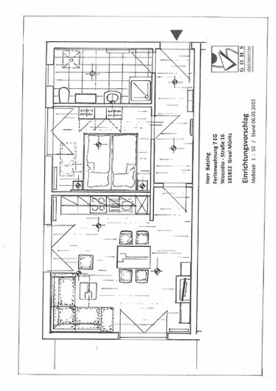 - Im separaten Schlafzimmer befindet sich ein Doppelbett. (180 cm x 200 cm)