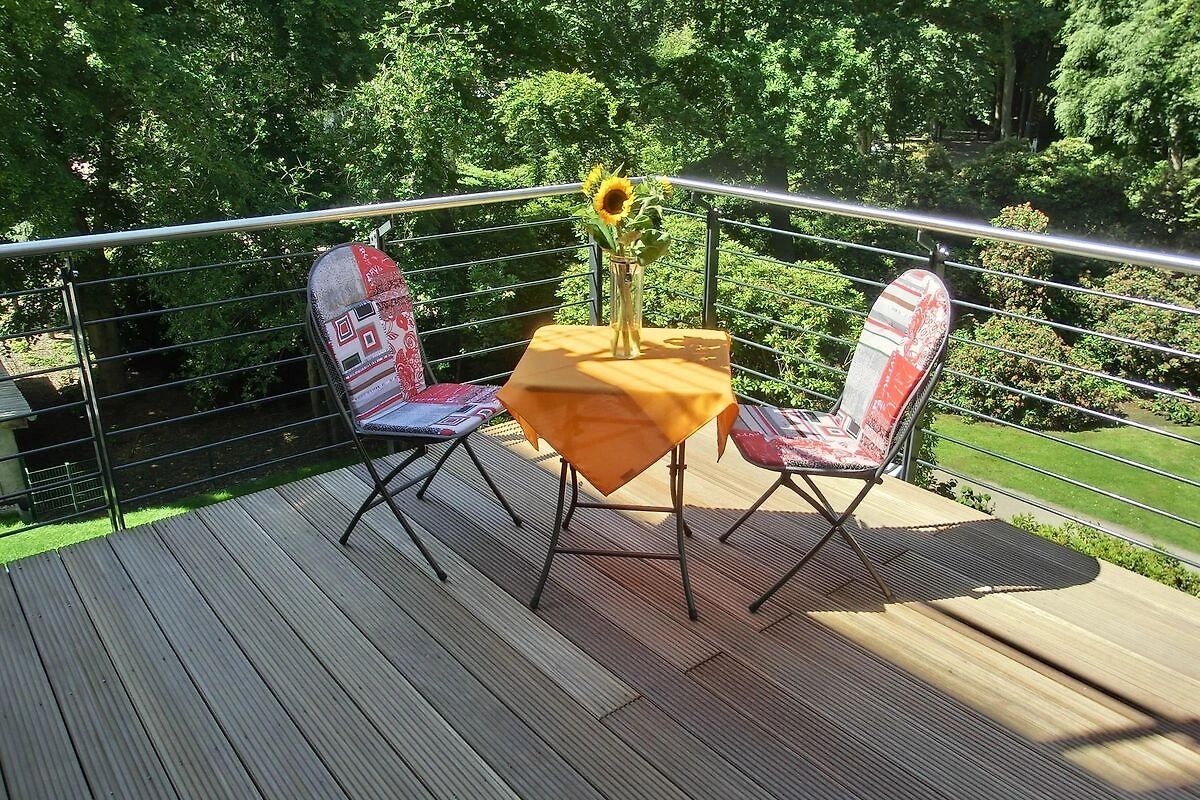 - großer, teilweise überdachter Balkon (ca. 30 m²) mit Loungemöbeln