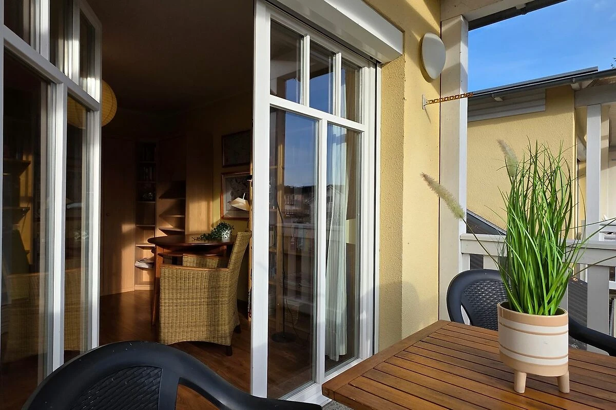 - zwei möblierte Balkone (Süd- und Nordwestseite) mit Blick auf Wald und Richtung Meer