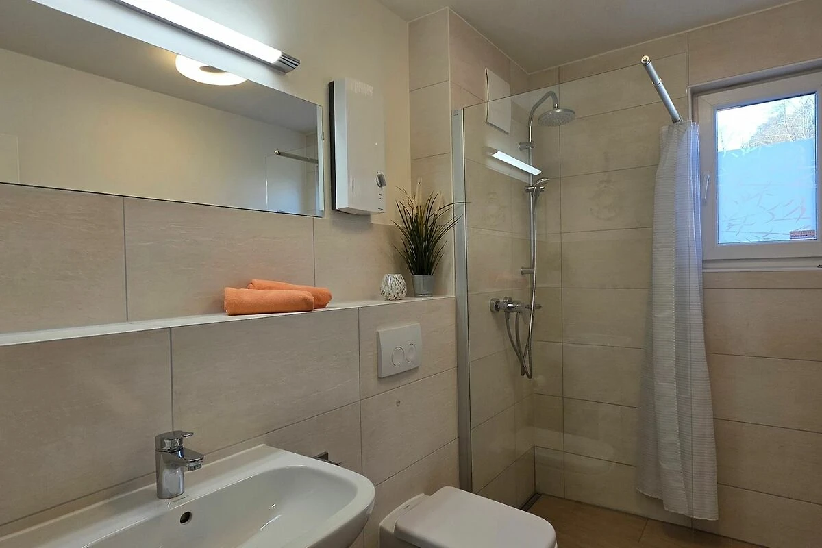 - Tageslichtbad mit WC, Dusche, Fön und ausreichend Ablagemöglichkeiten