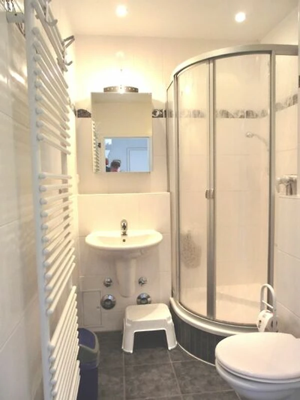 Ein Badezimmer mit Dusche und die praktische Waschmaschine runden die Annehmlichkeiten ab und bieten den zusätzlichen Komfort, den Sie für einen entspannenden Urlaub benötigen. Die Ferienwohnung E8 bietet darüber hinaus einen Privatparkplatz für Ihr Fahrzeug.