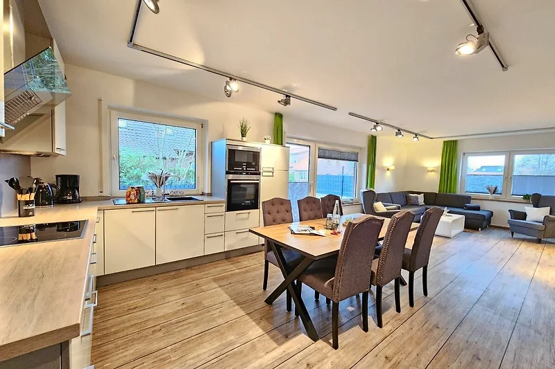 Die voll ausgestattete, moderne Küche lässt keine Wünsche offen: Hier können Sie Ihre Lieblingsgerichte auch im Urlaub bequem zubereiten.