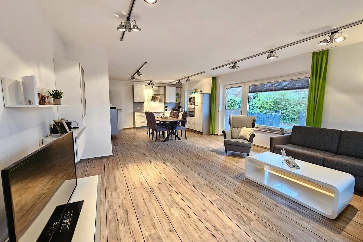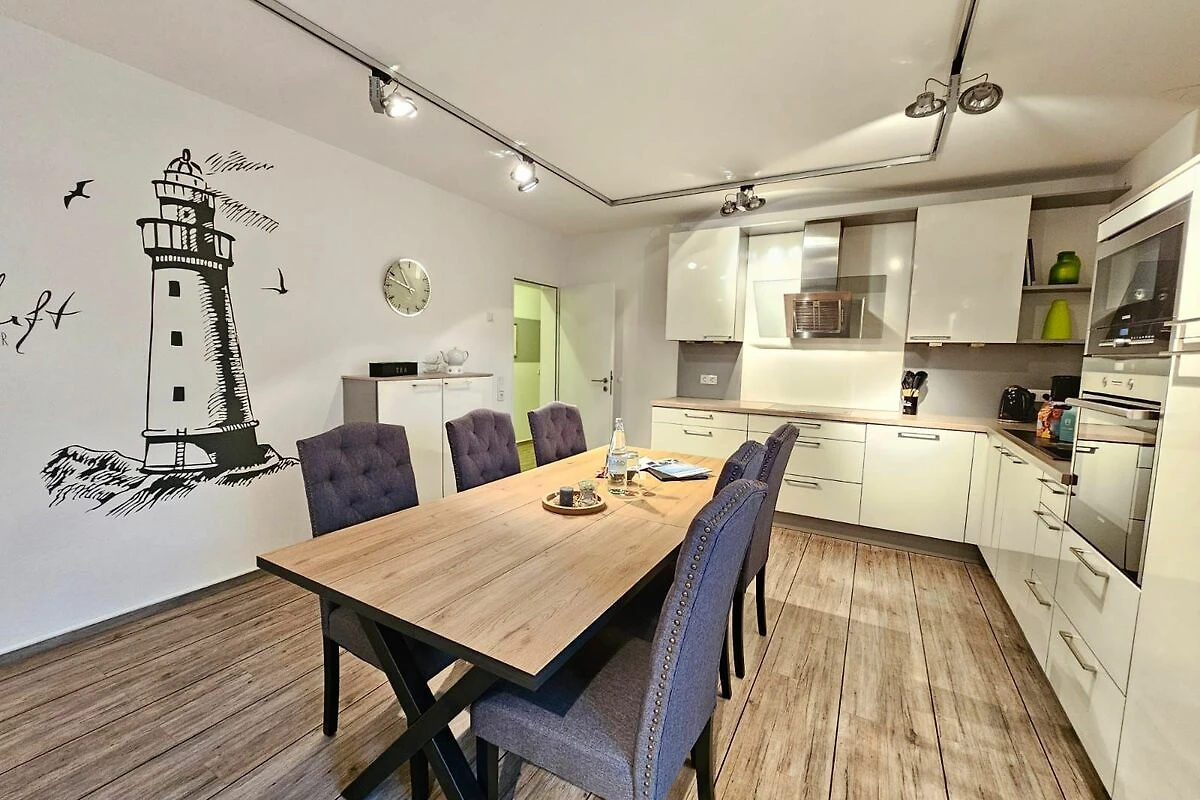 Die moderne Erdgeschoss-Ferienwohnung „Fiete“ in Norddeich bietet Ihnen ein helles, stilvolles Zuhause für Ihren Nordseeurlaub. Die Wohnung verfügt über zwei gemütliche Schlafzimmer für erholsame Nächte und einen großen, offenen Wohn- und Essbereich, der zum gemeinsamen Entspannen und Genießen einlädt.