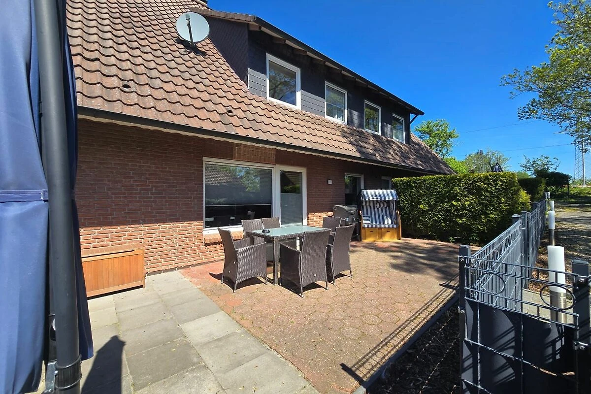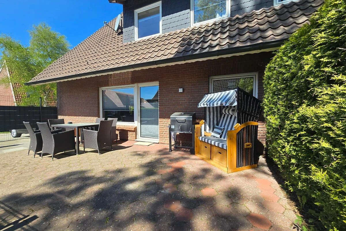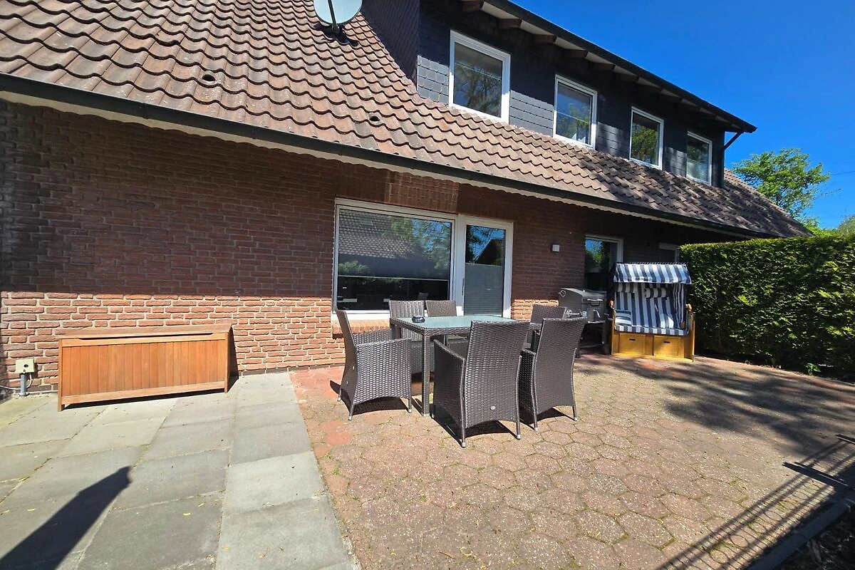 Ein besonderes Highlight ist die große Terrasse mit eigenem Strandkorb, die Ihnen zu jeder Jahreszeit erholsame Stunden an der frischen Nordseeluft schenkt. Für gesellige Abende steht Ihnen außerdem ein moderner Grill zur Verfügung.
