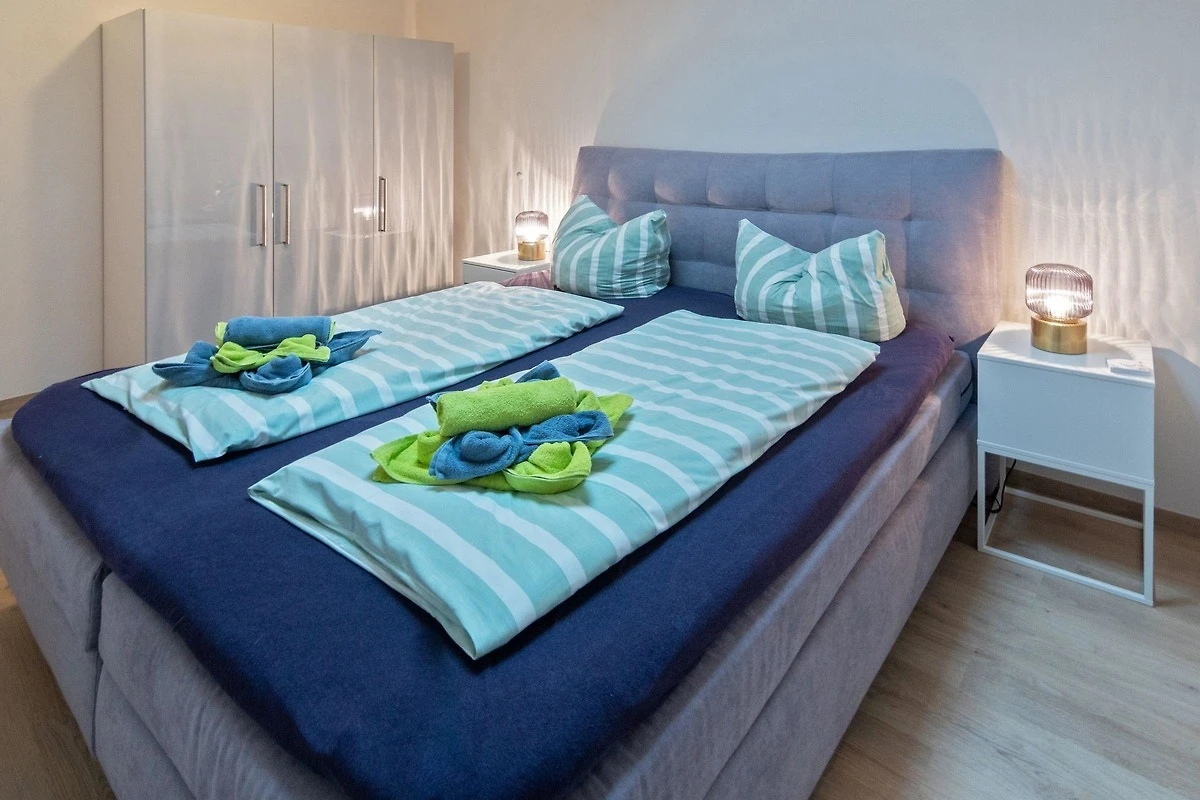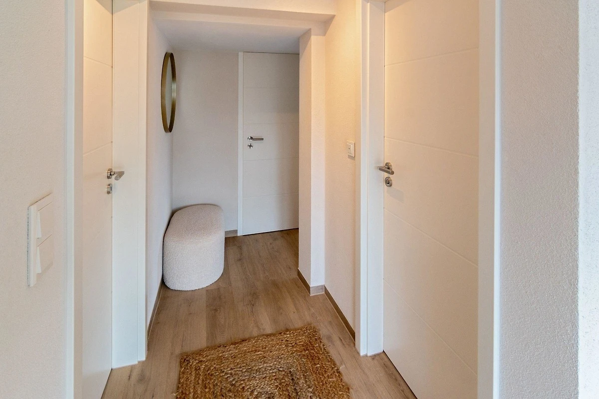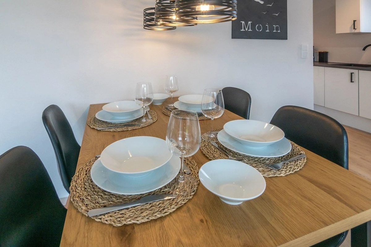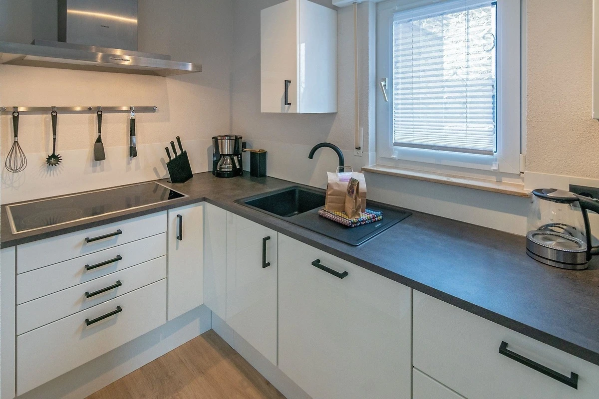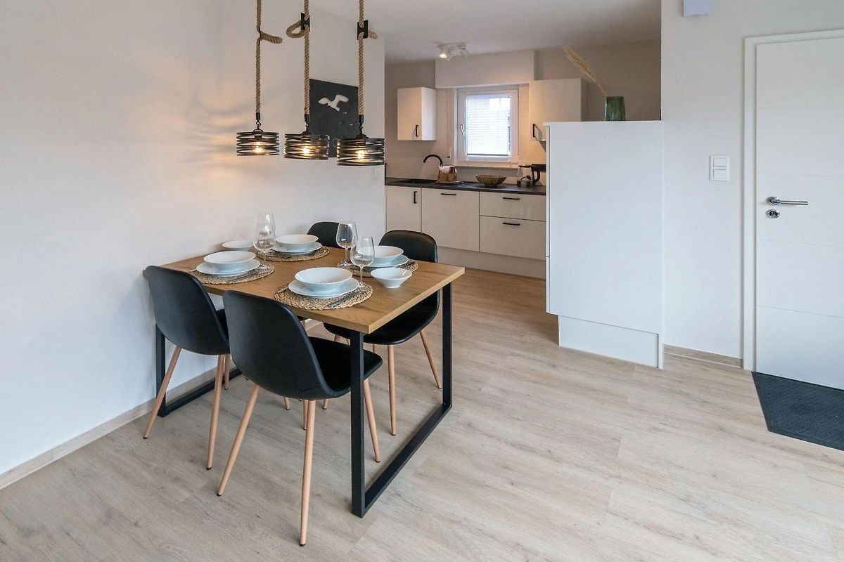 Die Ferienwohnung bietet eine ideale Unterkunft für Entspannung und Komfort. Sie verfügt über zwei Schlafzimmer: eines mit einem Doppelbett und das andere mit zwei Einzelbetten. Die separate Küche ist bestens ausgestattet mit einem Geschirrspüler, Elektro-/Gasherd, Backofen, Kühlschrank, Kaffeemaschine, Toaster und Wasserkocher. Ein Esstisch lädt zu gemeinsamen Mahlzeiten ein. Das moderne Badezimmer bietet eine bodengleiche Dusche, einen Haartrockner und ein Fenster für Tageslicht. Die Allergikergeeignete Wohnung ist durch WLAN-Anschluss und eine HiFi-Anlage mit TV ergänzt. Für Familien steht ein Kinderhochstuhl bereit. Ein Parkplatz ist ebenfalls vorhanden. Weitere Annehmlichkeiten wie eine Waschmaschine, Heizung und Geschirr mit Besteck sorgen für zusätzlichen Komfort. Diese Unterkunft bietet einen perfekten Rückzugsort, um die Freizeit in vollen Zügen zu geniessen.