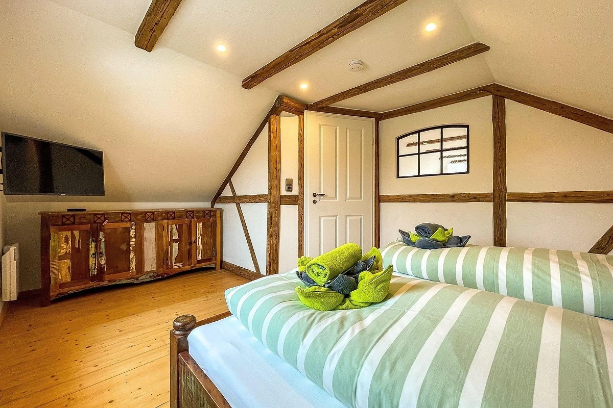 Die grosszügige Ferienwohnung bietet Platz für bis zu sechs Personen und zeichnet sich durch ihre Allergikergeeignete Ausstattung aus. Drei einladende Schlafzimmer mit komfortablen Doppelbetten garantieren erholsame Nächte. Das helle Badezimmer mit Fenster und Fussbodenheizung ist mit Dusche und Haartrockner ausgestattet.