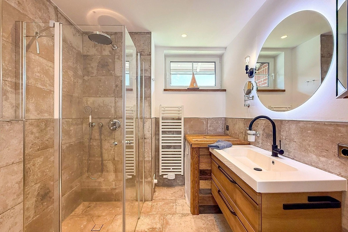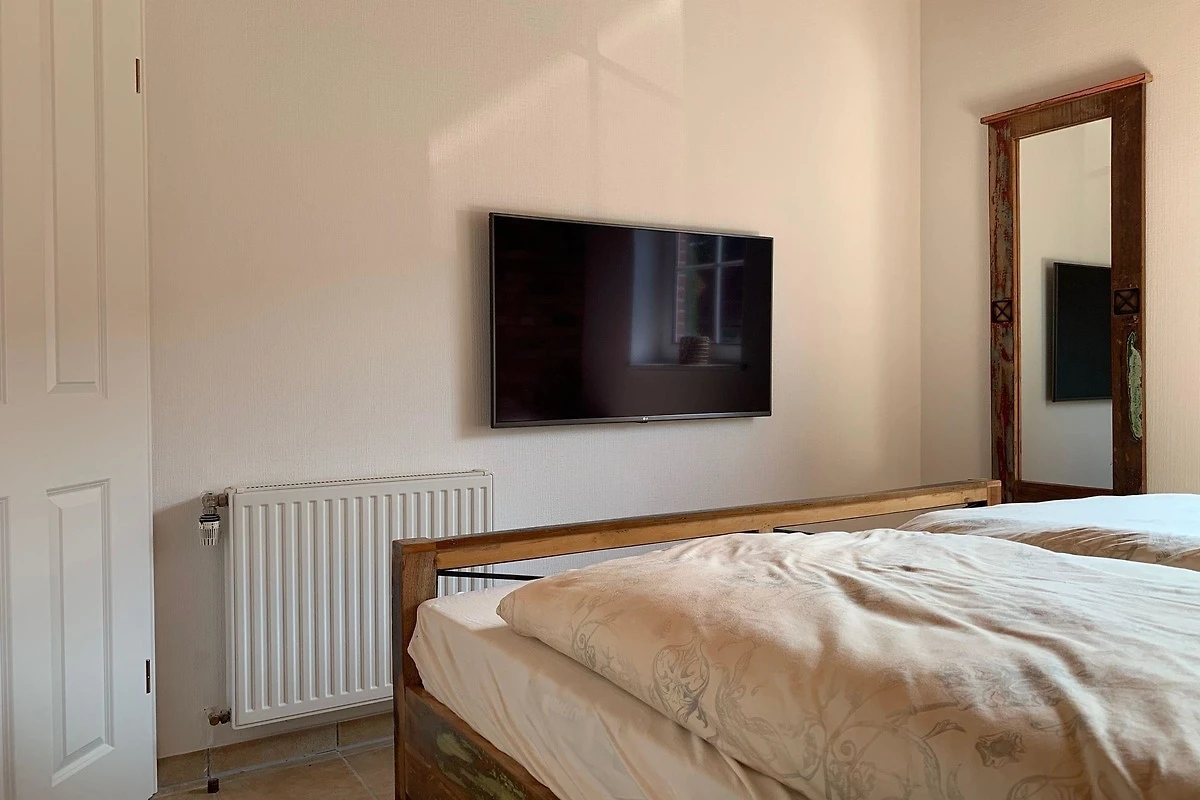 Die Ferienwohnung bietet eine komfortable und moderne Ausstattung, die speziell auf die Bedürfnisse von Gästen ausgelegt ist. Mit drei Schlafzimmern, ausgestattet mit insgesamt drei Doppelbetten, bietet sie Platz für erholsame Nächte. Das offene Wohnkonzept umfasst eine bestens ausgestattete Küche mit Geschirrspüler, Elektro-/Gasherd, Backofen, Mikrowelle und einem Kühlschrank mit Gefriermöglichkeit. Ein gemütliches Wohnzimmer mit Kamin, HiFi-Anlage und TV lädt zum Entspannen ein. Das Badezimmer verfügt über ein Fenster und moderne Annehmlichkeiten wie eine Fussbodenheizung und einen Haartrockner. Für Familien stehen ein Kinderhochstuhl sowie eine Spielekonsole bereit, während WLAN und Parkmöglichkeiten die praktische Ausstattung abrunden. Zusätzlich finden Gäste Waschmaschine, Wäschetrockner und Bügeleisen vor. Diese allergikergeeignete Wohnung ist die ideale Wahl für einen entspannten Aufenthalt.