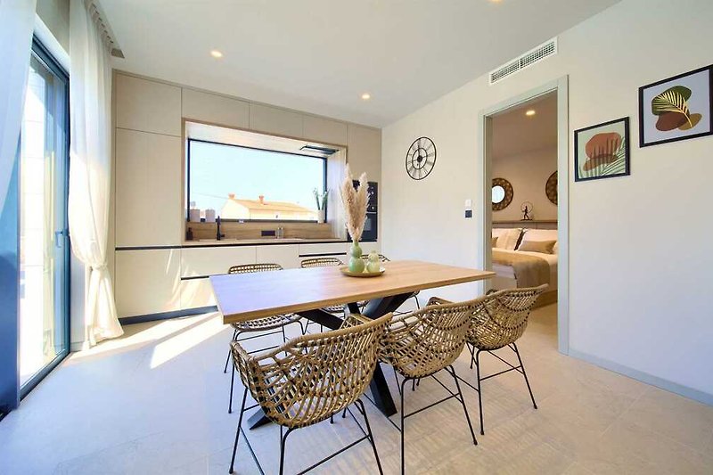 Charmantes neu renoviertes Haus QUARNARO in Omišalj, Insel Krk für 4 - 6 Personen. Das Haus hat zwei Schlafzimmer und zwei Badezimmer mit Dusche. Der Aussenbereich mit beheiztem Pool, Terrasse und Grillplatz ist der perfekte Ort, um heisse Sommertage zu geniessen! Haustiere sind willkommen. Privatparkplatz zur Verfügung gestellt. Die Villa ist neu in unserem Angebot und wartet geduldig darauf, ihre ersten Gäste glücklich zu machen. Voll ausgestattet, schön eingerichtet und in der Nähe des Zentrums von Omišalj und des Meeres gelegen. Der Pool ist geöffnet vom 28.03.-15.10.