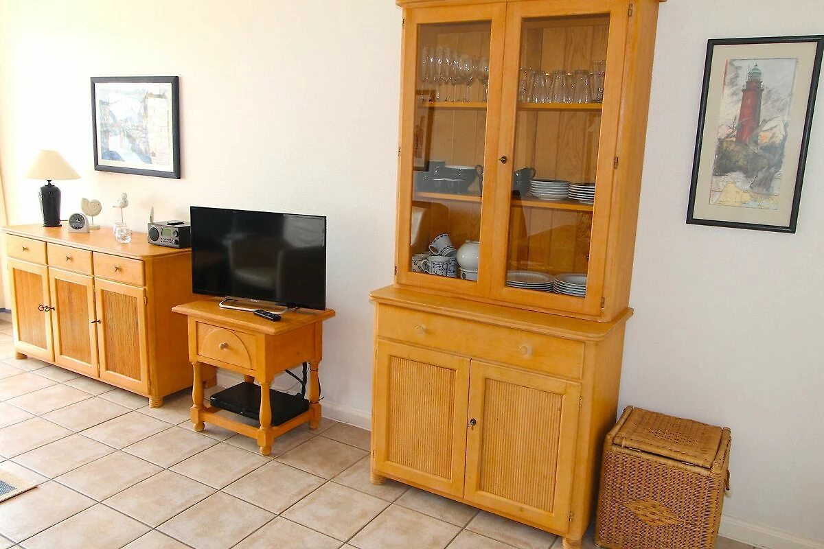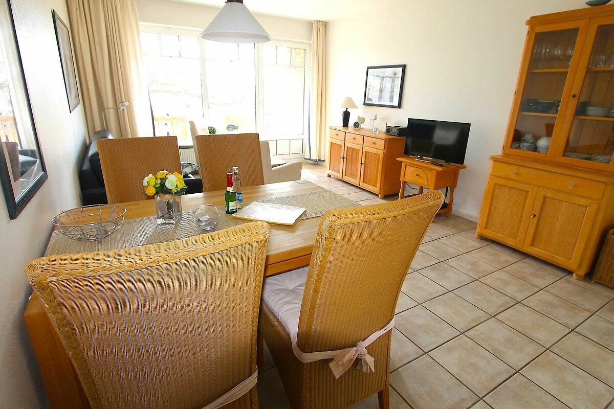 Das Wohn-/Esszimmer ist mit freundlichen Pinienmöbeln ausgestattet. Flachbildfarbfernseher sowie Radio (mit Ipod Dock) sind vorhanden.