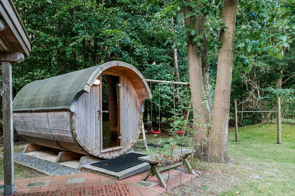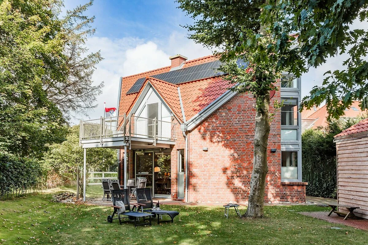Zu den Highlights des freistehenden Feriendomizils zählen wir, neben der Nähe zum beliebten Wyker Südstrand und der 27-Loch-Golfanlage, den großzügigen Garten mit Fass-Sauna und Terrasse, sowie den Kaminofen im Wohnbereich.
