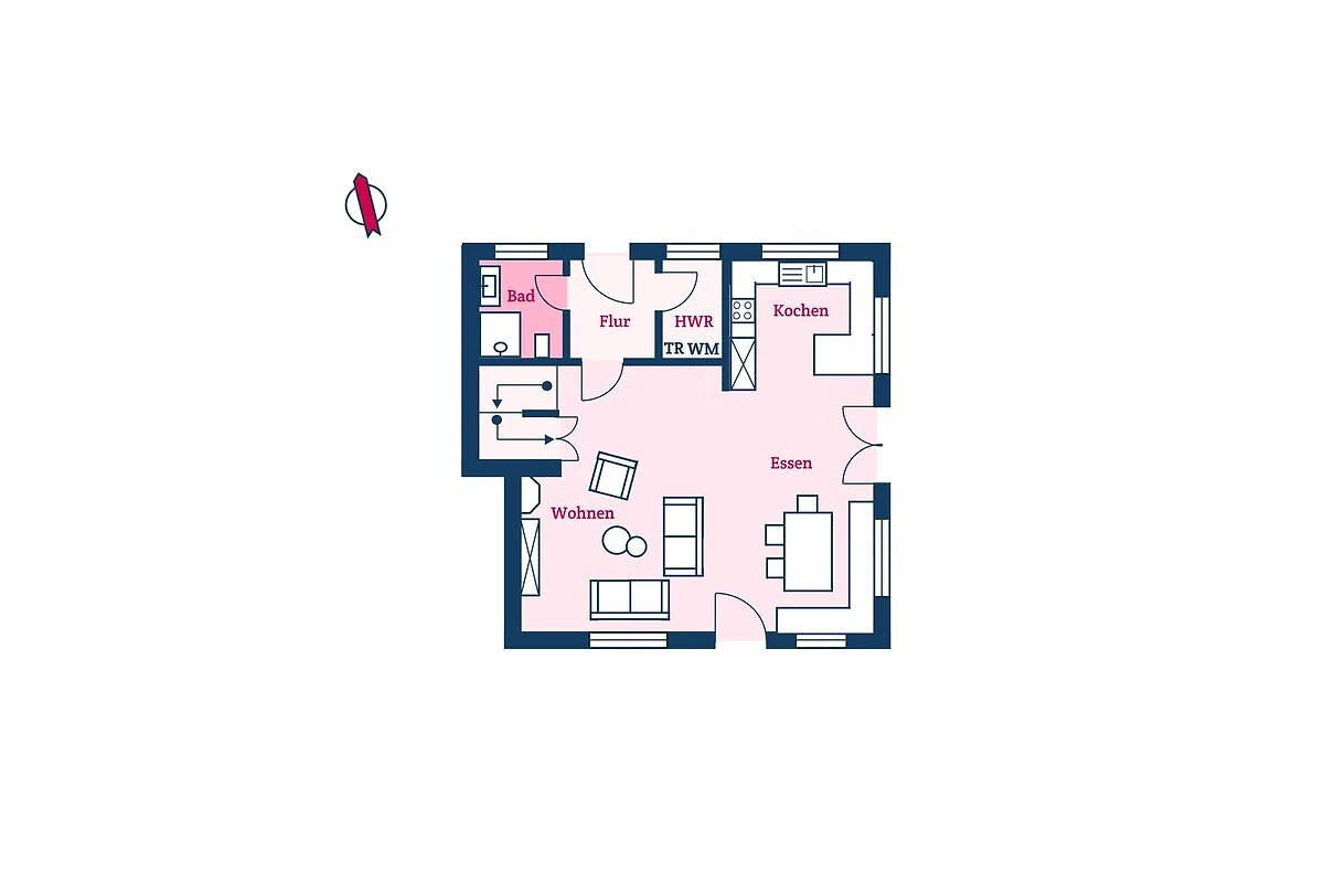 Am Haus Deichblick 2 stehen Ihnen ein abgegrenzter, eigener Gartenabschnitt sowie eine 59 m² große Terrasse zur alleinigen Nutzung zur Verfügung. Zwei PKW-Stellplätze am Haus sowie eine Ladesäule für Elektroautos runden das Angebot ab. Diese sind an der östlichen Seite des Grundstücks gelegen.