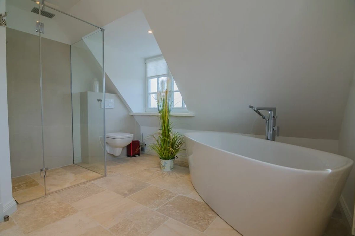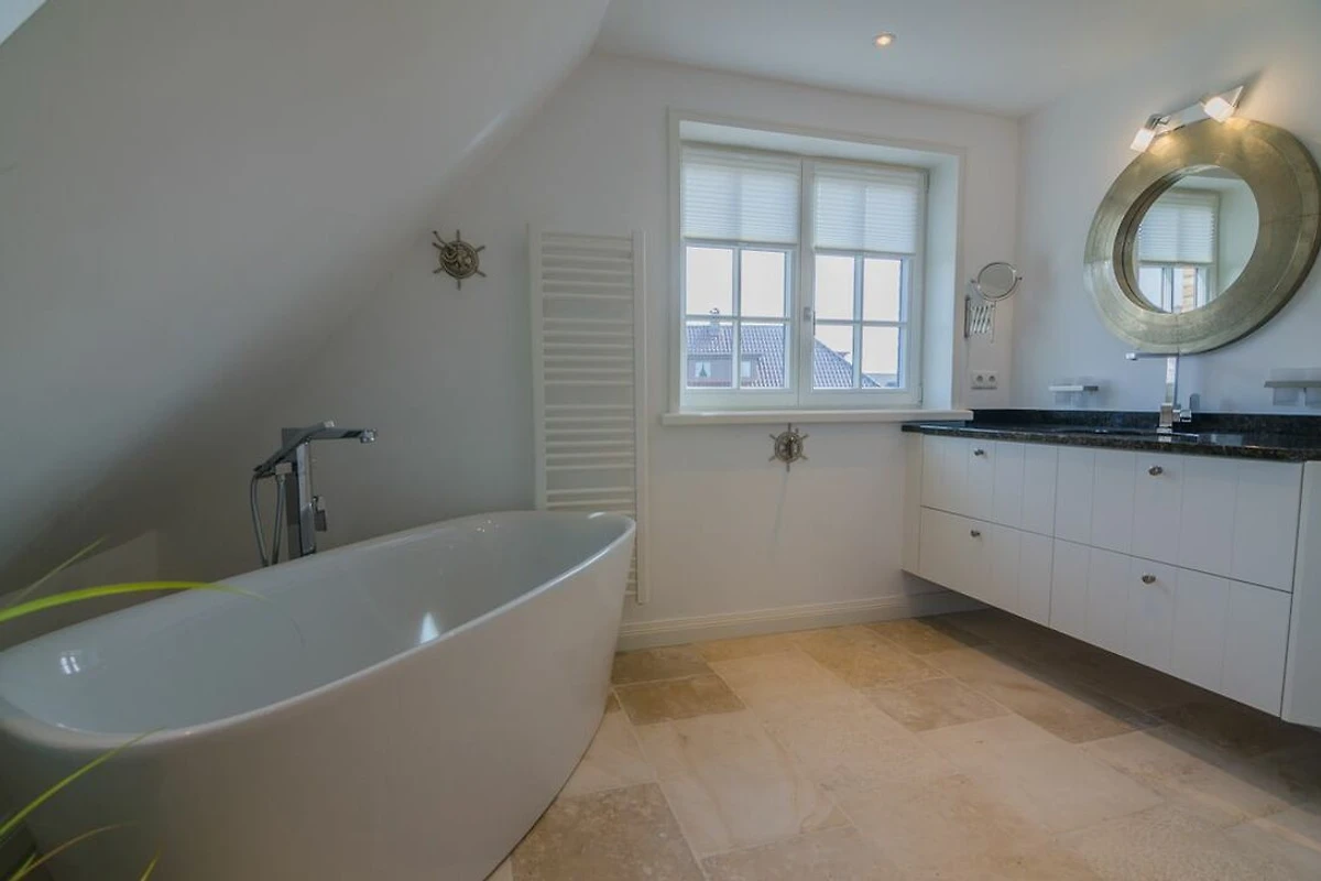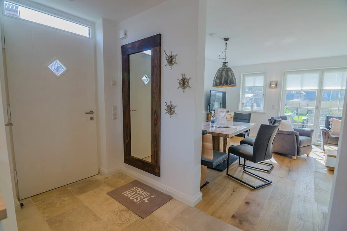 Das Hoogen Hüs ist für Ihren Aufenthalt in modernem Strandhaus Style eingerichtet worden. Riviera Maison, Massivholz-Möbel und frische Farben werden Sie begeistern. Der Wohn- und Essbereich wird Ihnen gefallen. Ein Kamin, ein Essbereich, Flat TV, Blue-Ray Player, Bose-Anlage, WLAN, gemütliche Sessel und Sofa lassen keine Wünsche offen. Aus dem Wohnbereich tritt man auf die Terrasse mit Gartenmöbeln und Strandkorb (Saisonal). In der offenen Küche erwarten Sie ein Kaffeevollautomat (Espresso, Kaffee und heißes Wasser),eine Kaffeefiltermaschine, Backofen und Kühlschrank mit Gefrierfach. Gleichzeitig befindet sich im Erdgeschoss ein Gäste WC. Durch das Treppenhaus gelangen Sie in das Obergeschoss. Dort finden Sie ein Schlafzimmer mit Flat TV und Blue Ray Player, ein Badezimmer mit Natursteinen und Fußbodenheizung, eine Dusche und eine freistehende Badewanne. Die Massivholztreppe führt Sie weiter ins Dachgeschoss, hier finden Sie ein weiteres Schlafzimmer, welches offen zur Treppe ist, mit Doppelbett. Folgt man der Treppe ins Souterrain finden Sie ein weiteres Wellnessbad mit Naturstein Dusche und einer KLAFS Sauna. Ein weiteres Schlafzimmer mit Flat TV steht Ihnen zur Verfügung. Zusätzlich befindet sich hier ein Hauswirtschaftsraum mit einem Waschtrockner. Das komplette Ferienhaus ist mit einer Fußbodenheizung ausgestattet. Ihre Wertsachen können Sie sicher in dem Hauseigenen Safe verwahren. Rauchen ist in diesem Objekt nicht erwünscht. Haustiere dürfen nach vorheriger Anmeldung und gegen Gebühr (10,- € pro Tier/Tag) hier wohnen. Zwei kostenlose Stellplätze gehört zum Objekt. Weitere kostenlose Parkplätze befinden sich in unmittelbarer Nähe.