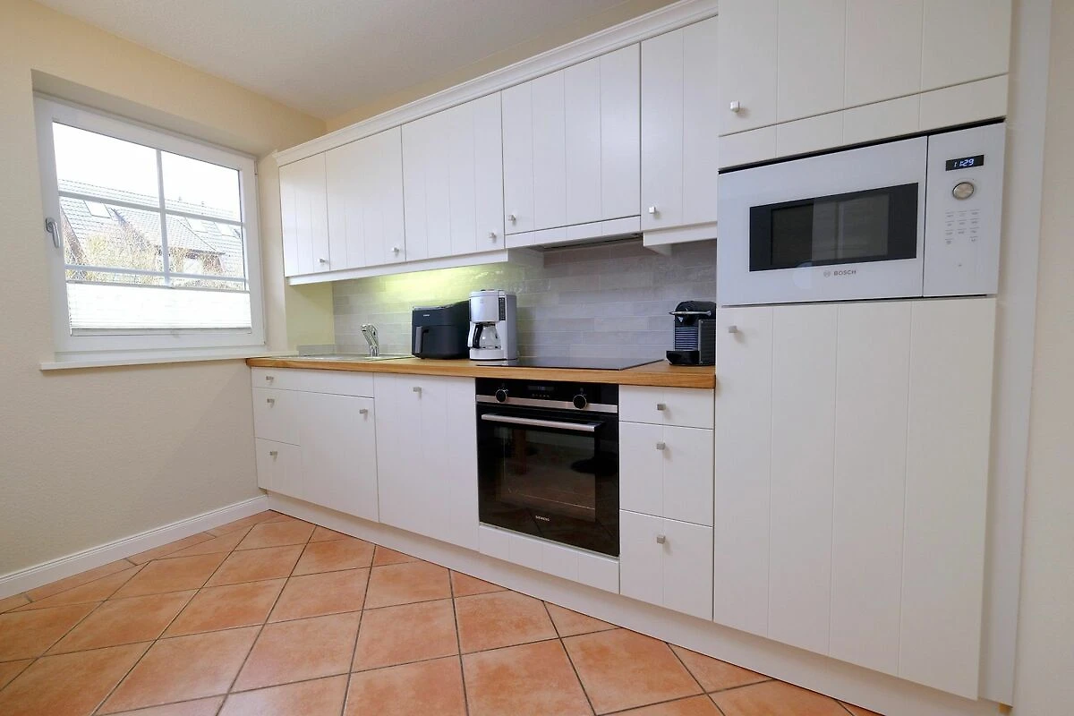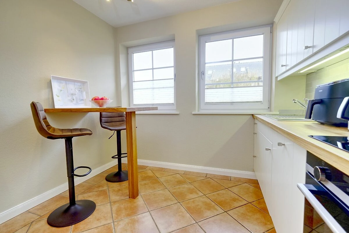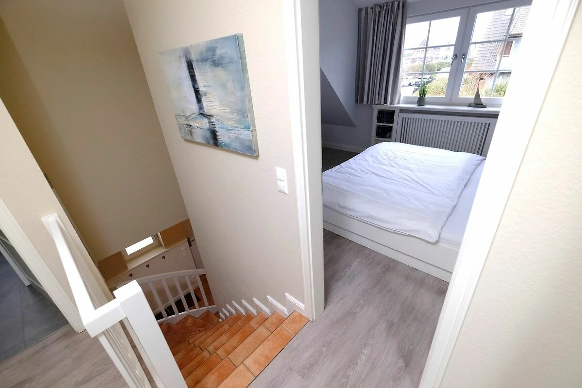 Vom Eingangsbereich mit Garderobe gelangen Sie in das lichtdurchflutete und großzügige Wohn- / Esszimmer mit zwei einladenden großen Sofas, Flatscreen, DVD-Player, Stereoanlage und Essecke. Von hier haben Sie Zutritt zur Süd-Terrasse mit Garten und Bestuhlung. Hier können Sie im vorhandenen Sylter Strandkorb bei einem Glas Wein den Sonnenuntergang genießen. Im Erdgeschoss liegen zudem das Duschbad mit WC, die separate, vollausgestattete Küche (Airfryer, Spülmaschine, Backofen, Ceranfeld, Kühlgefrierkombi, Nespresso-Maschine) und ein Hauswirtschaftsraum mit Waschmaschine & Trockner. Über die Treppe gelangen Sie ins 1. OG, wo Sie zwei Schlafzimmer mit je einem Doppelbett (180 x 200 cm) und Flatscreen vorfinden. Das Schlafzimmer Richtung Süden, verfügt zudem über einen herrlich sonnigen Balkon mit passenden Möbeln.
