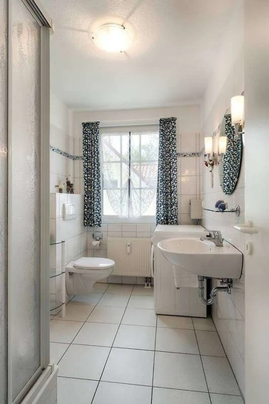 Die komfortabel und geschmackvoll eingerichteten Wohnung befindet sich in der oberen Etage. Das Haus mit 4 Wohnungen liegt in einer ruhigen Nebenstrasse und ist eine Nichtraucher-Wohnung. In wenigen Gehminuten sind sie am Ostsee-Strand oder im Darsser Wald . Der Bäcker und der Supermarkt sind in unmittelbarer Nähe. Die Wohnung geht über 2 Etagen, unten Wohnzimmer mit Küchenzeile, Schlafzimmer, grosses Bad mit Dusche und Waschmaschine (gegen Gebühr), Abstellraum, oben 1 Schlafzimmer und 1 WC. Zur Ausstattung gehören: Fernseher und Stereoanlage, Geschirrspüler, Backofen, Toaster, Kaffeemaschine, Mixer, reichlich Zubehör sowie Balkonmöbel. Für die kleinen Gäste gibt es 1 Kinderbett, 1 Hochstuhl und ein Treppengitter. Im Garten ist eine Sandkiste und eine rustikale Sitzgruppe mit Grill.