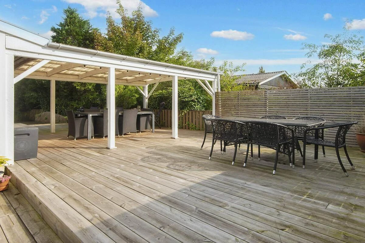 , Küche(Kochherd(elektrisch), Kochherd(2 Kochplatten), Kaffeemaschine, Mikrowelle, Spülmaschine, Kühlschrank(+ Gefrierfach), Tiefkühlschrank(1-59L)), Wohn-/Schlafzimmer(TV(Deutsch Fernsehsender, dänische Fernsehsender), Stereoanlage, Hochstuhl), Schlafzimmer(Doppelbett), Schlafzimmer(Doppelbett), Schlafzimmer(2x Einzelbett), Badezimmer(Fußbodenheizung)(Waschbecken, Dusche, Toilette), Wirtschaftsraum(Trockner, Waschmaschine), Carport, Heizung(elektrisch), Terrasse, Gartenmöbel, Liegestühle, Spielgeräte, Luft-Luft-Wärmepumpe