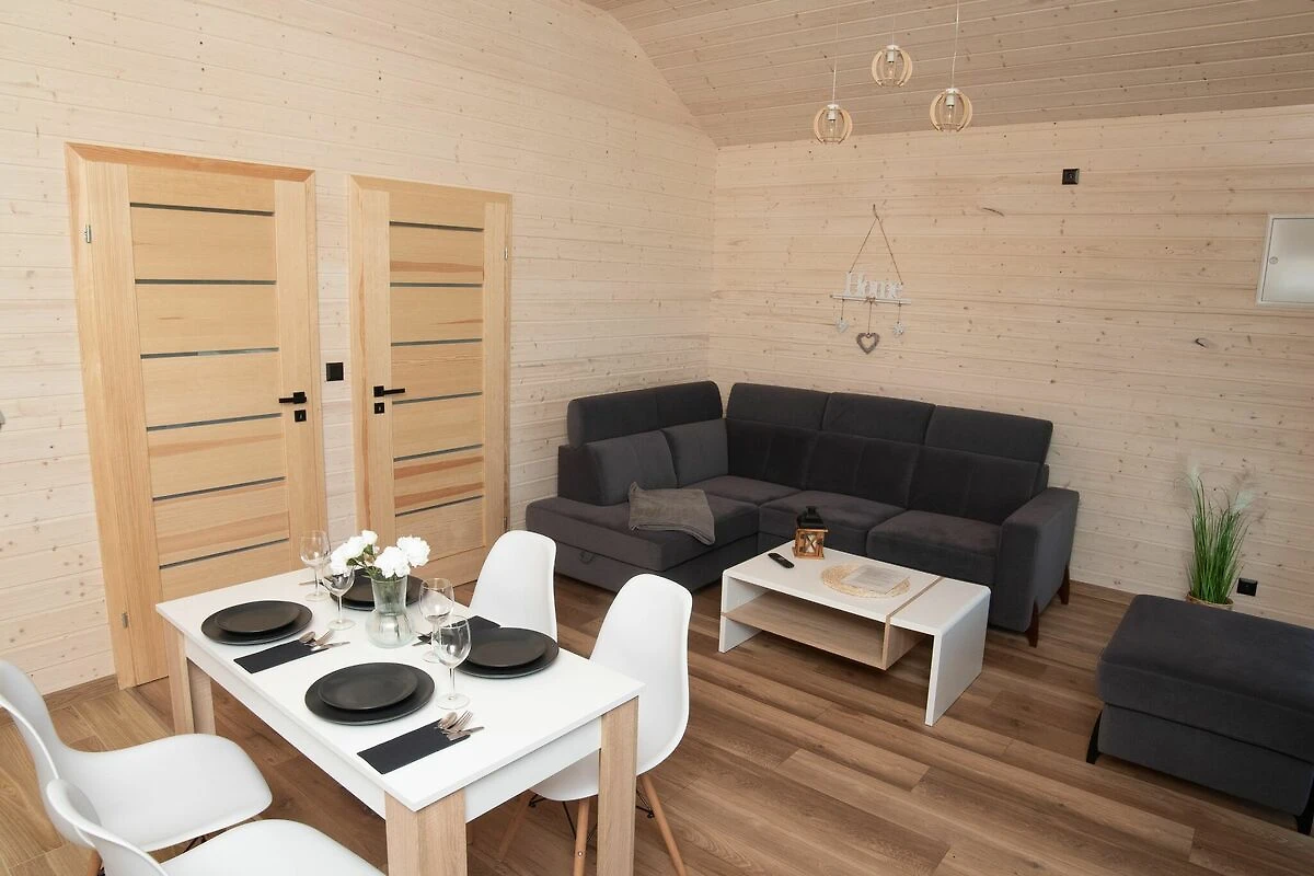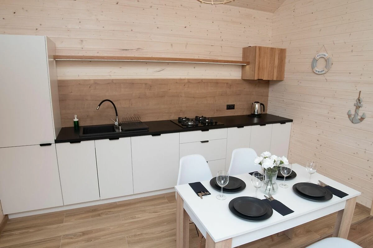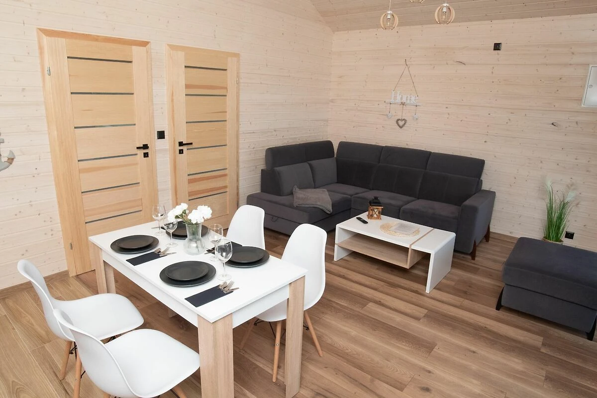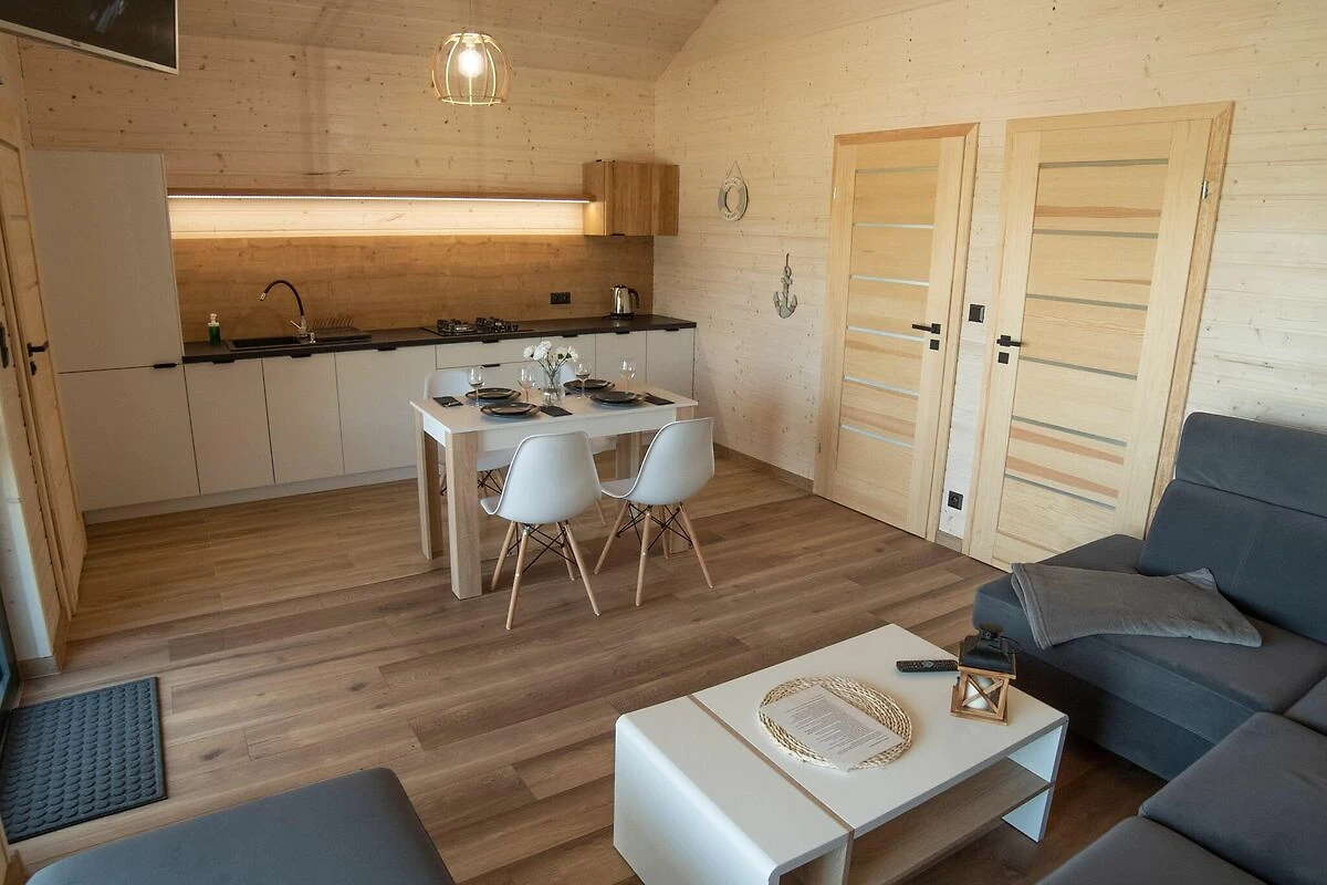 Komfortable einstöckige Häuser. Jeweils mit überdachter Terrasse, mit Gartenmöbeln und Grillzubehör. Das Haus besteht aus einem Wohnzimmer, einer Küchenzeile, 2 separaten Schlafzimmern und einem Badezimmer mit Dusche. Elektrische Heizung. WLAN ist verfügbar.