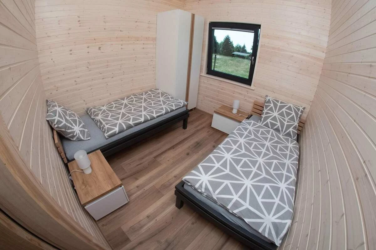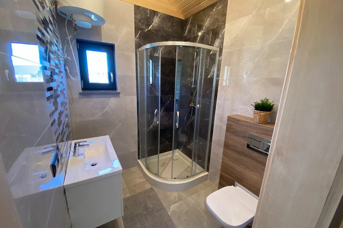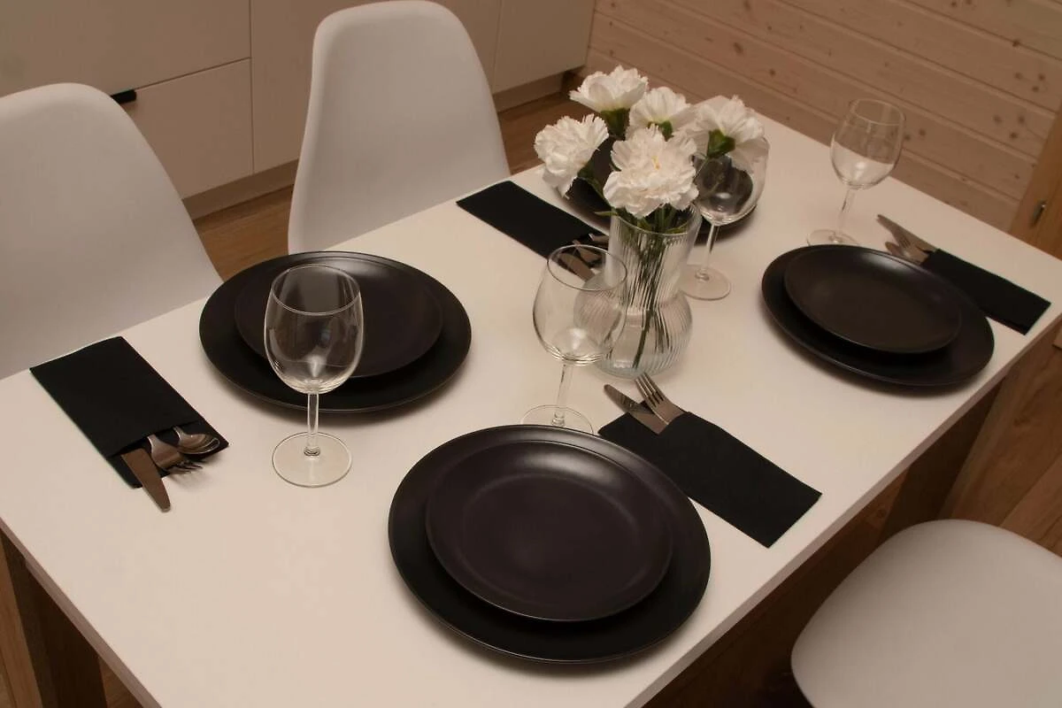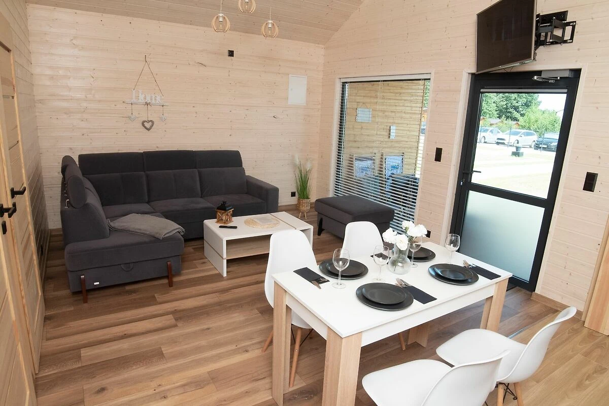 Komfortable einstöckige Häuser. Jeweils mit überdachter Terrasse, mit Gartenmöbeln und Grillzubehör. Das Haus besteht aus einem Wohnzimmer, einer Küchenzeile, 2 separaten Schlafzimmern und einem Badezimmer mit Dusche. Elektrische Heizung. WLAN ist verfügbar.
