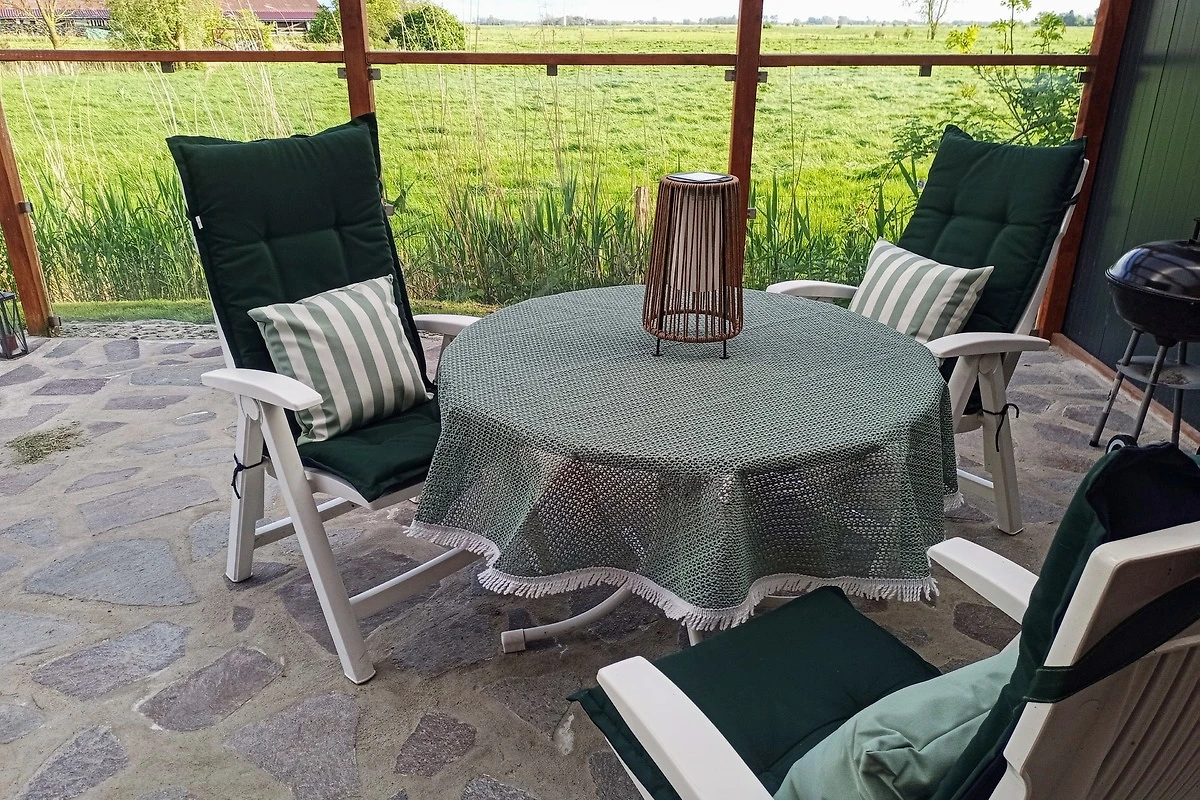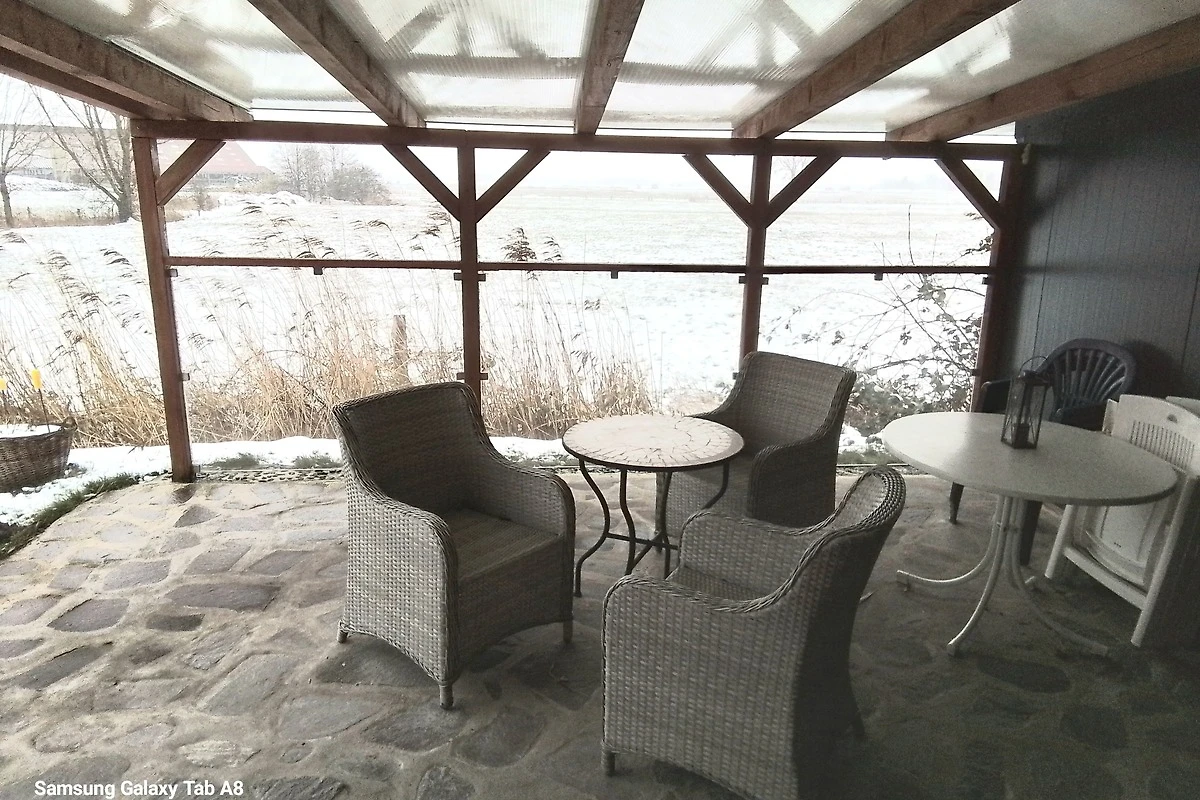 Die Ferienwohnung 1 mit ebener Terrasse und einem wunderschönen Ausblick über Wiesen und Felder und ist ca. 45qm gross.