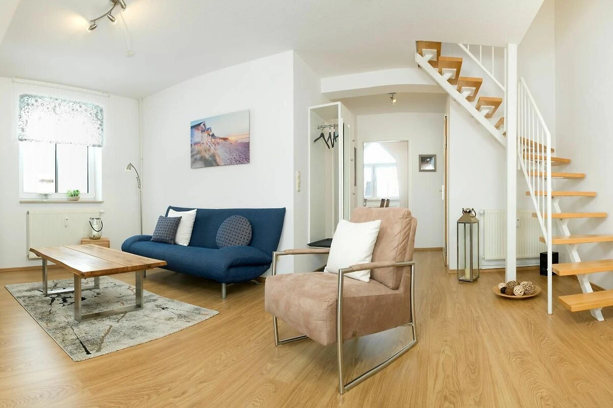 Wir haben uns hier wirklich wohl gefühlt. Die Wohnung ist durchdacht und liebevoll eingerichtet, es fehlt an nichts, und hier kann man problemlos auch Tage genießen, an denen man nicht viel draußen unternimmt. Es ist sehr gemütlich und überraschend geräumig. Das Schlafzimmer im Spitzboden ist der Hit! Für uns ganz wichtig: Die Matratzen sind in einem sehr guten Zustand und ausreichend fest. In der Küche kann man sich kulinarisch austoben, wie man möchte; es ist alles da, was man braucht, und das in prima Qualität. Dass man aus zwei Fenstern sogar das Meer sehen kann, war eine bezaubernde Überraschung. Die Lage am Dorfrand ist herrlich: Vorm Balkon der Pferdehof, und aus der Haustür drei Schritte bis zu Wiesen und Feldern für Abendspaziergänge unter dem weiten Himmel. Ohne Fahrrad ist man in knappen 15 Minuten zum Meer/Hafen/Strand gelaufen. Eine tolle Wohnung!
