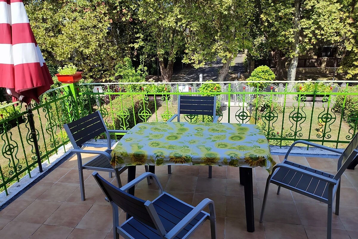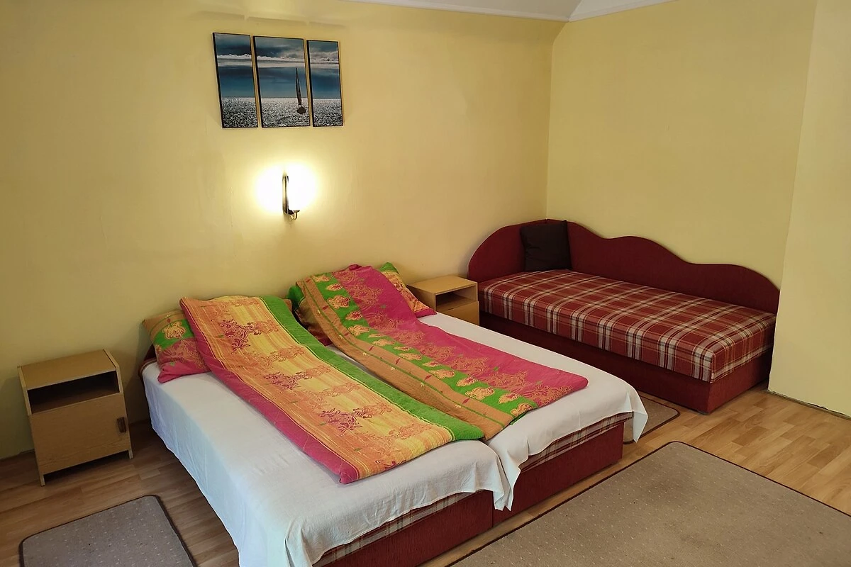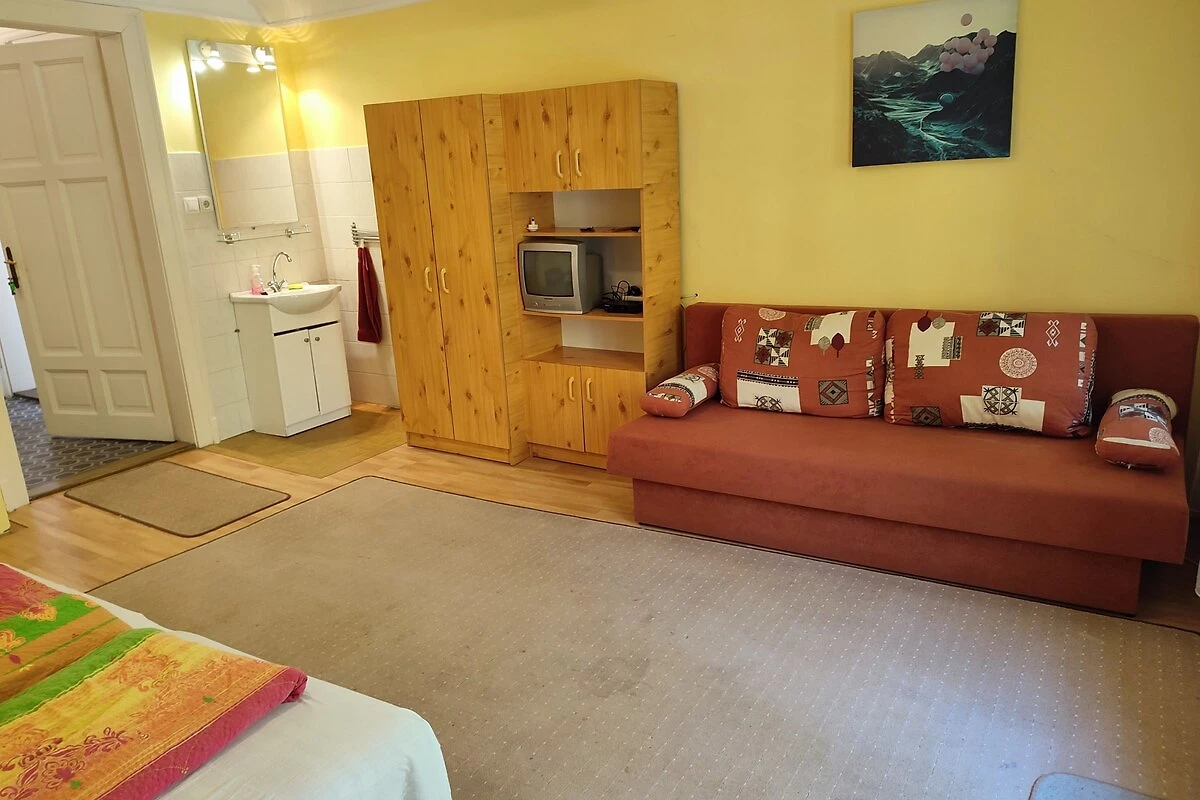 Siófok. Die Ferienwohnung befindet sich auf einem geschlossenen Grundstück, von einem Zaun begrenzt. Der Vermieter wohnt ständig im Haus, nutzt jedoch einen separaten Eingang. Für Jugendgruppen nicht erlaubt. Die Zufahrt erfolgt über eine Nebenstrasse (asphaltiert). Parkplatz (für 2 Pkws) auf dem Grundstück.