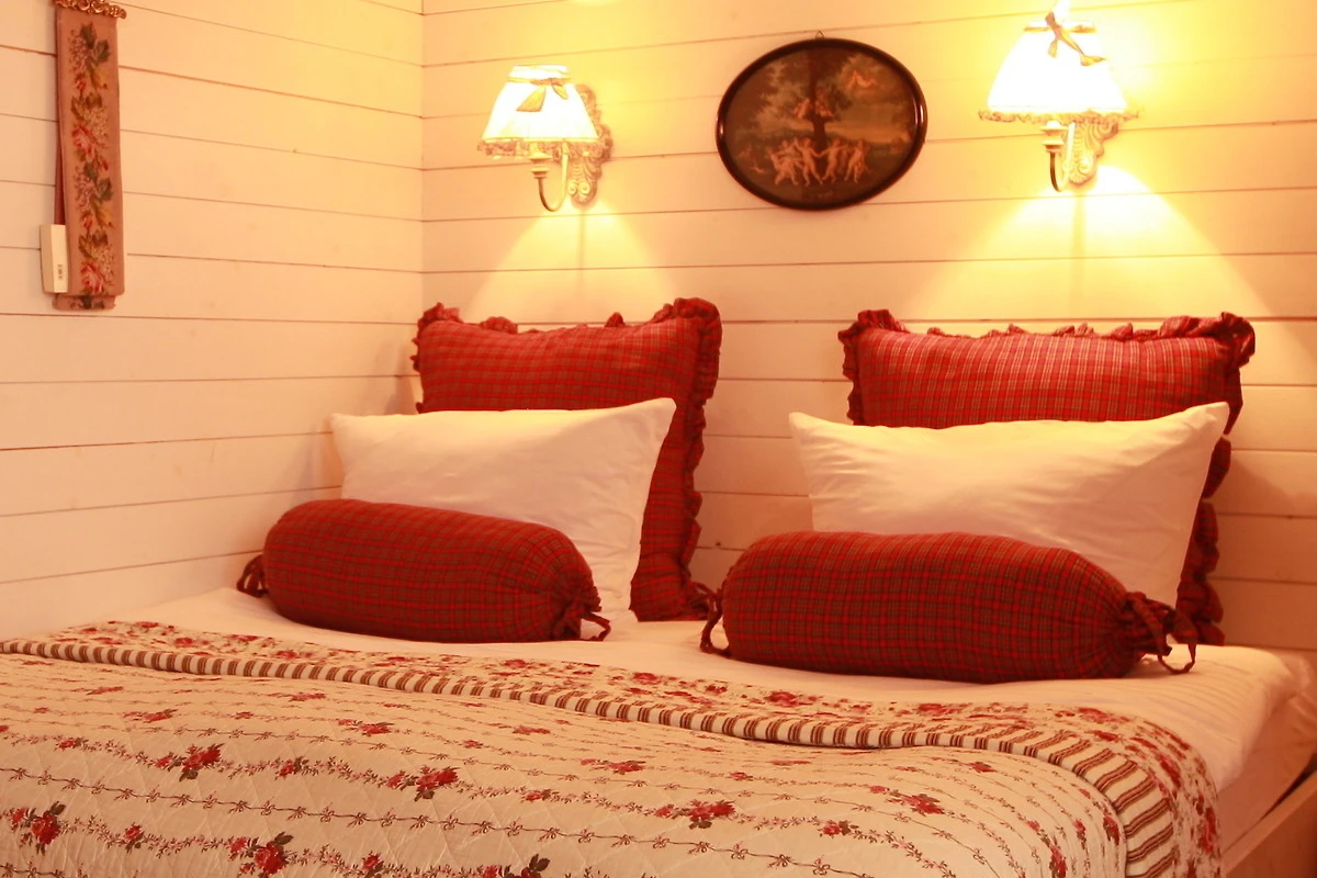Im Wohnbereich am Holzofenkamin wartet auf Sie ein grosses Kuschel-Sofa (& TV) mit Blick in den Garten. Das Schlafzimmer ist durch eine grosse Holzflügeltür getrennt und ein "Apfeltraumbett" (180x200) wartet auf Sie und Ihre Träume. Das Badezimmer ist mit grosser Dusche und separatem WC ausgestattet und weckt vielleicht Erinnerungen...