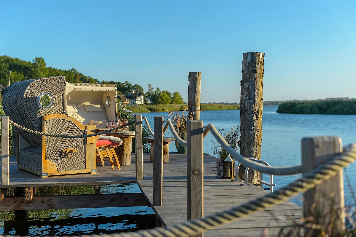 Sonnenbaden im privaten Strandkorb auf dem ganz privaten Badesteg oder abtauchen und sich im Seitenarm der Ostsee "Bek" erfrischen