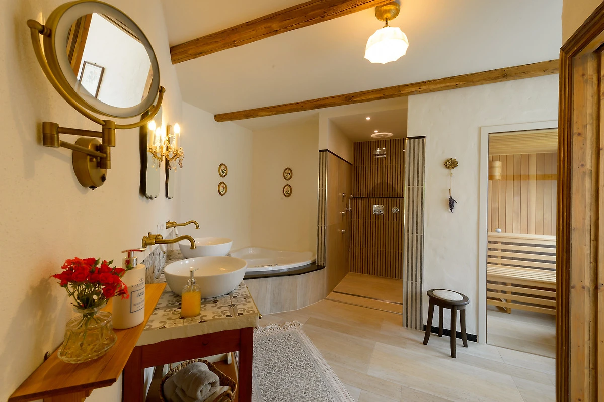tief durchatmen in der privaten Sauna bei 100° und Bergkräuterduft