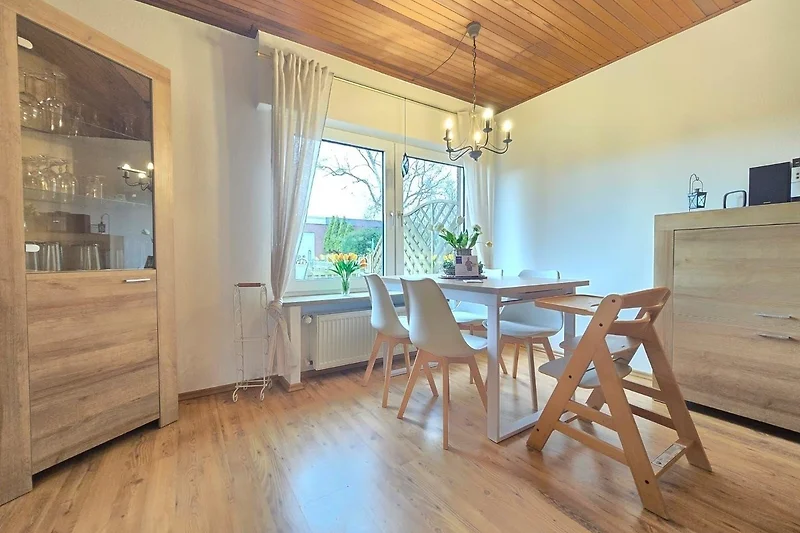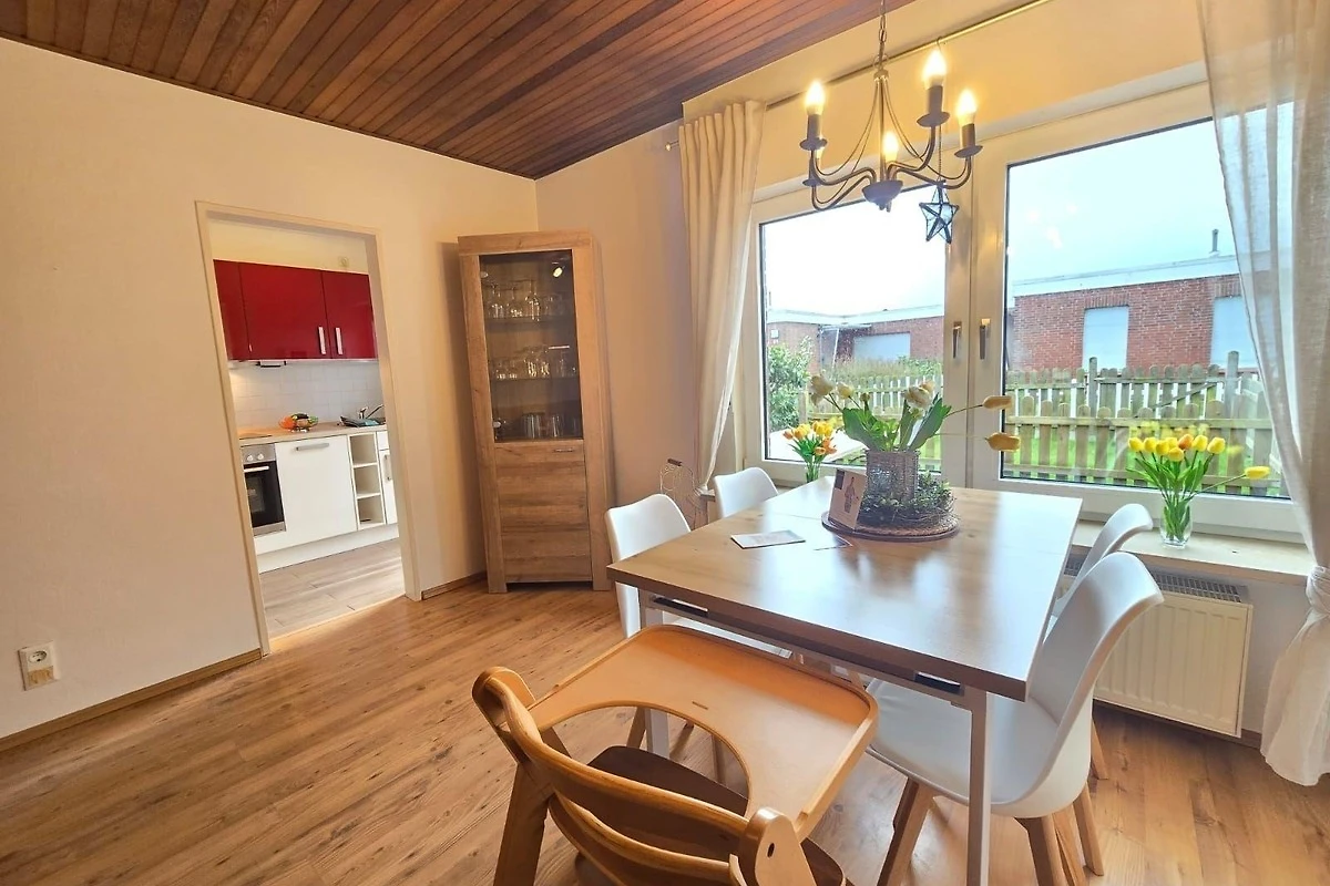 Die Ferienwohnung befindet sich in einer ruhigen und malerischen Lage, nur wenige Gehminuten vom charmanten Ortskern Norddeich entfernt. Die nahegelegene Küste ist in etwa 1,5 Kilometer erreichbar und lädt zu ausgedehnten Spaziergängen am Strand ein. Naturfreunde können in nur 2 Kilometern Entfernung die idyllischen Landschaften für Bike- und Wandertouren erkunden. Für Wassersportler stehen Wind- und Kitesurfen in der Umgebung zur Verfügung. Angler finden in den Gewässern direkt vor Ort zahlreiche Möglichkeiten, während Reiter in der näheren Umgebung geeignete Routen und Reitmöglichkeiten entdecken können. Familien mit Kindern haben Zugang zu Spielplätzen und Minigolf in unmittelbarer Nähe. Zudem bieten Wellnessangebote wie Massagen und Kosmetikbehandlungen eine willkommene Entspannung. Museen in der Umgebung bieten interessante Einblicke in die regionale Kultur und Geschichte.