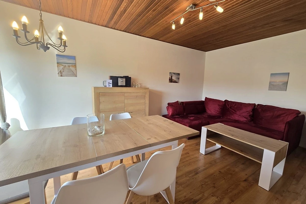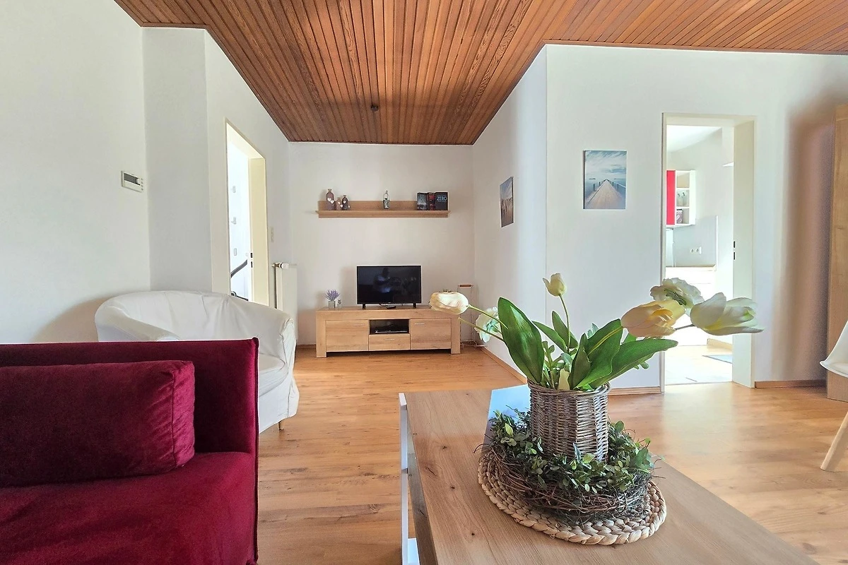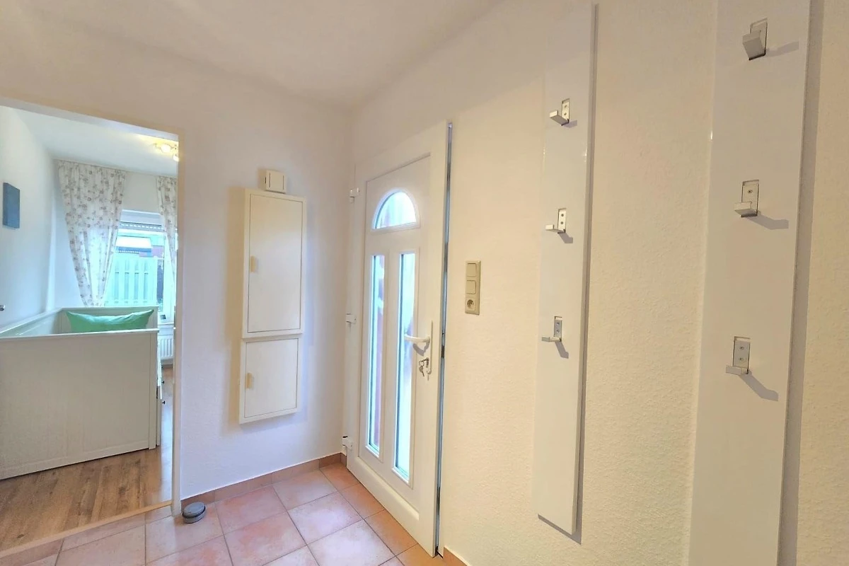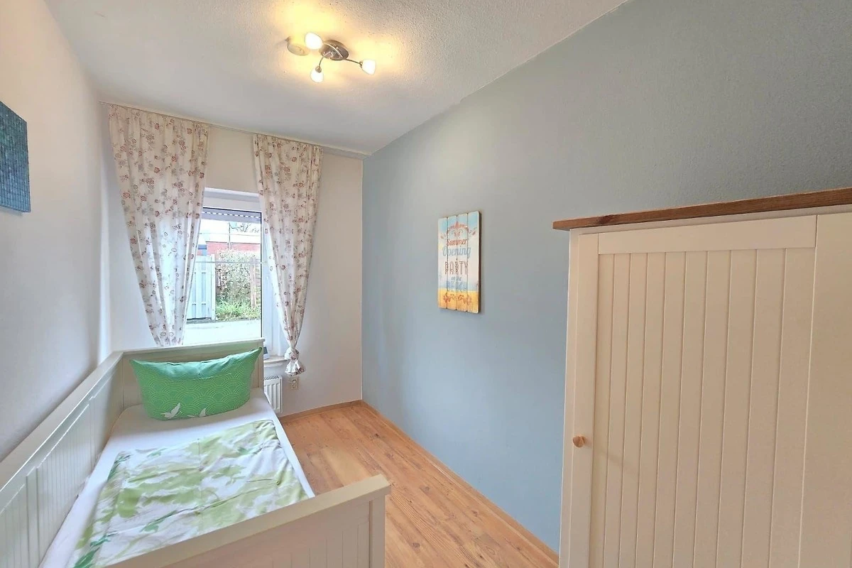 Die Ferienwohnung bietet eine komfortable und allergikergeeignete Unterkunft, die sich ideal für Familien oder kleine Gruppen eignet. Mit zwei Schlafzimmern, ausgestattet mit einem Doppelbett und einem Einzelbett, sowie einem hellen Badezimmer mit Fenster, sorgt sie für Entspannung und Erholung. Die separate Küche verfügt über einen Elektroherd, Backofen und Mikrowelle sowie eine Gefriermöglichkeit, Kühlschrank, Kaffeemaschine, Toaster und Geschirr. Ein Esstisch lädt zu gemeinsamen Mahlzeiten ein. Zur weiteren Ausstattung gehören ein Wohnzimmer mit Sofa und Sessel, TV sowie ein Haartrockner im Badezimmer. Internet mit WLAN steht zur Verfügung, und ein Parkplatz ist ebenfalls vorhanden. Für die kleinen Gäste gibt es einen Kinderhochstuhl. Die Wohnung ist ideal für einen entspannten Urlaub, ausgestattet mit einem Starterset an Reinigungsmitteln und Pflegeprodukten, sowie einem Sonnenschirm für die sonnigen Tage.