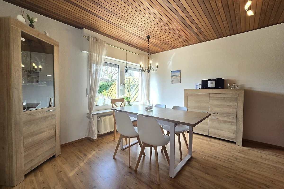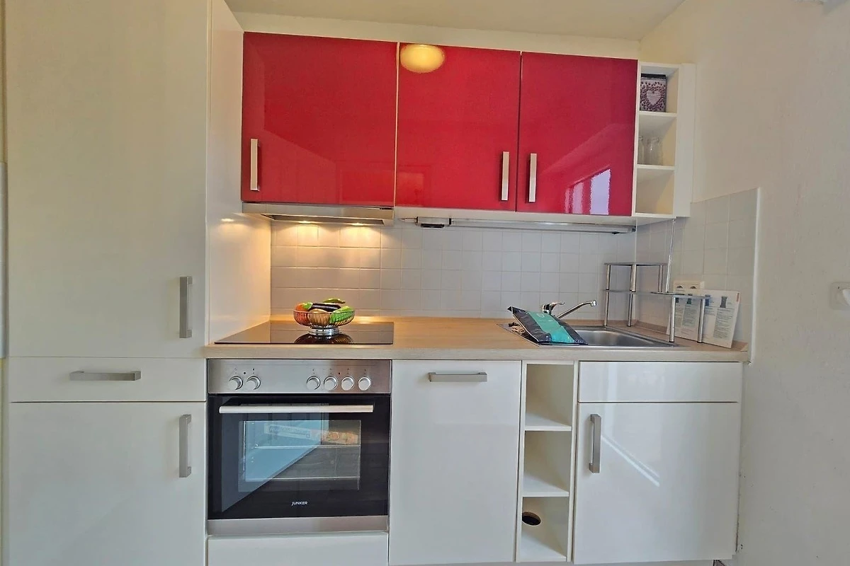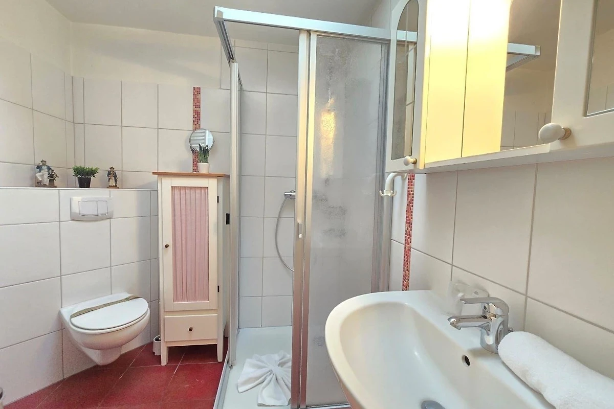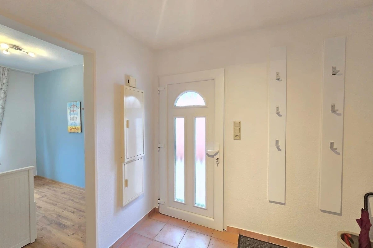 Die Ferienwohnung bietet eine komfortable und allergikergeeignete Unterkunft, die sich ideal für Familien oder kleine Gruppen eignet. Mit zwei Schlafzimmern, ausgestattet mit einem Doppelbett und einem Einzelbett, sowie einem hellen Badezimmer mit Fenster, sorgt sie für Entspannung und Erholung. Die separate Küche verfügt über einen Elektroherd, Backofen und Mikrowelle sowie eine Gefriermöglichkeit, Kühlschrank, Kaffeemaschine, Toaster und Geschirr. Ein Esstisch lädt zu gemeinsamen Mahlzeiten ein. Zur weiteren Ausstattung gehören ein Wohnzimmer mit Sofa und Sessel, TV sowie ein Haartrockner im Badezimmer. Internet mit WLAN steht zur Verfügung, und ein Parkplatz ist ebenfalls vorhanden. Für die kleinen Gäste gibt es einen Kinderhochstuhl. Die Wohnung ist ideal für einen entspannten Urlaub, ausgestattet mit einem Starterset an Reinigungsmitteln und Pflegeprodukten, sowie einem Sonnenschirm für die sonnigen Tage.