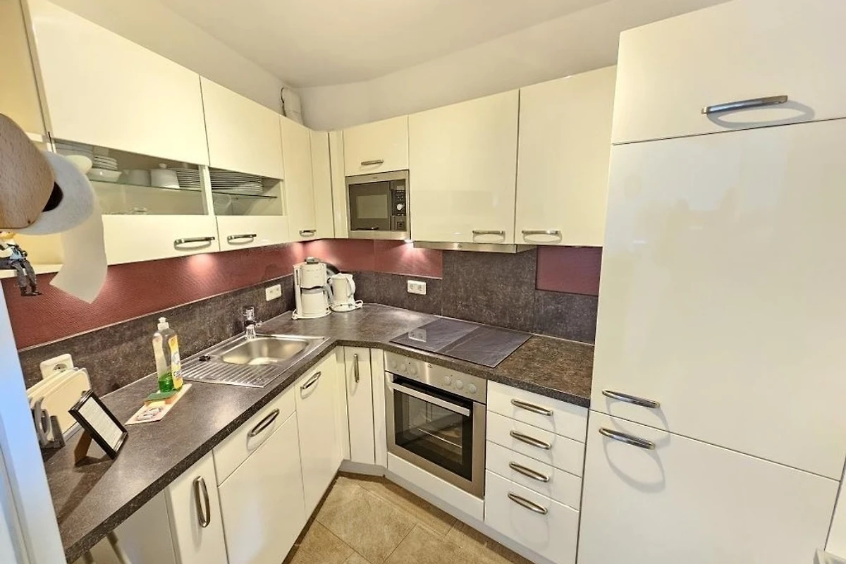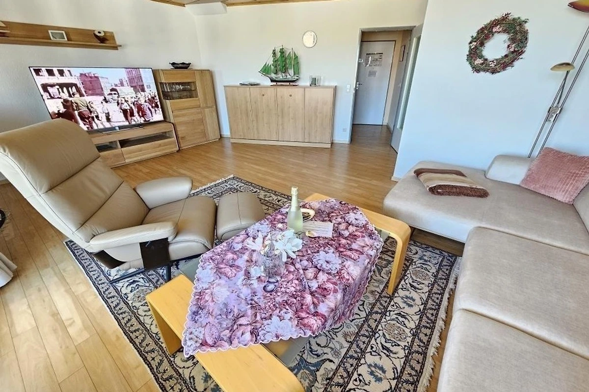 Die Wohnung ist nach Westen ausgerichtet und bietet Ihnen die Möglichkeit, von der überdachten Loggia (mit elektrischer Markise versehen) die herrliche Sicht auf die See geniessen zu können. Beobachten Sie den Schiffsverkehr oder geniessen Sie entspannt die wunderschönen Sonnenuntergänge. Ihr Fahrrad können Sie im abgeschlossenen Fahrradkeller unterstellen. Hier besteht auch die Möglichkeit, E-Bikes aufzuladen.
