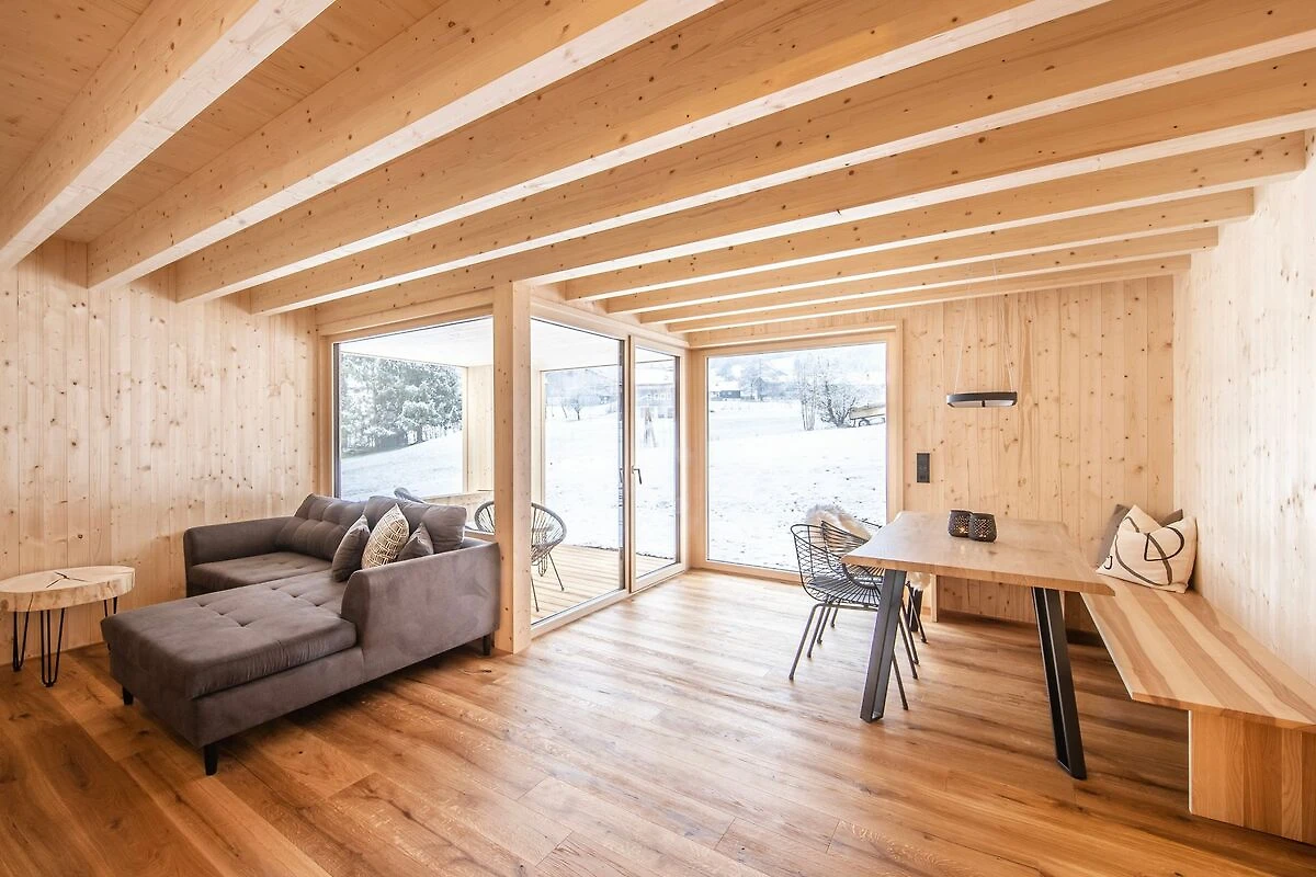 Das verwendete Fichtenholz bringt heimelige und gemütliche Atmosphäre ins Ferienhaus.