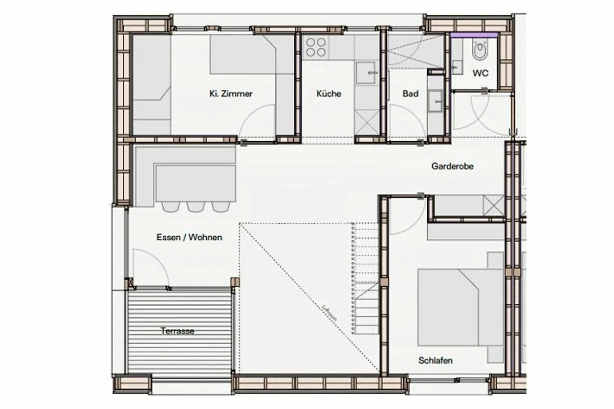 Das verwendete Fichtenholz bringt heimelige und gemütliche Atmosphäre ins Ferienhaus.