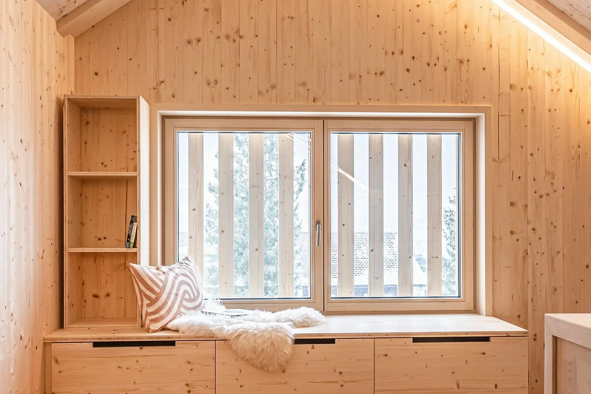 Das verwendete Fichtenholz bringt heimelige und gemütliche Atmosphäre ins Ferienhaus.