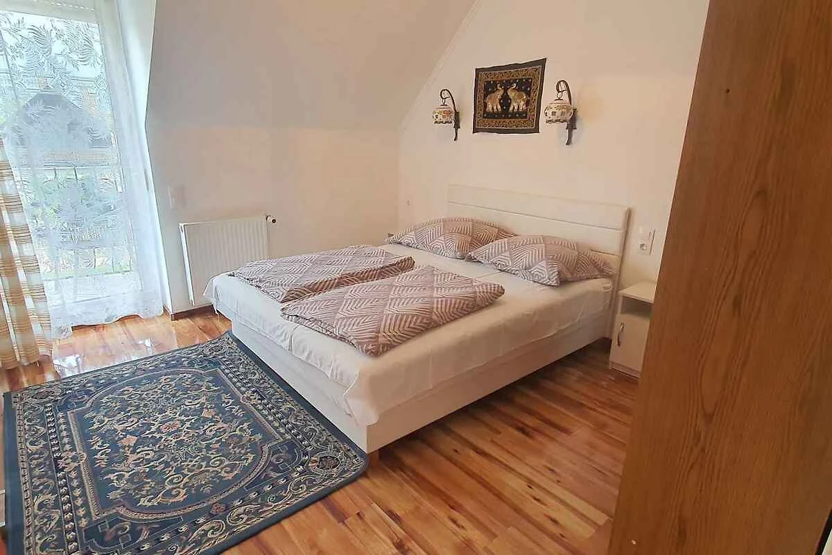 Balatonberény. Die Ferienwohnung befindet sich auf einem 300 qm grossen, geschlossenen Gartengrundstück mit Wiese, Blumen, Sträuchern und Bäumen, von einem Zaun begrenzt. Der Vermieter wohnt in einem separaten Gebäude auf dem Grundstück. BALBER132 (6P) und BALBER 133 (4P) befinden sich im selben Haus. Die Zufahrt erfolgt direkt von der Hauptstrasse (asphaltiert). Parkplatz (für 1 Pkw) auf dem Grundstück.