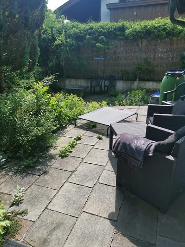 Über die Terrassentür geht es auf die grosse Südwest-Terrasse. Dort können Sie zusammen mit Ihrem Hund entspannt Ihren Urlaubstag aufklingen lassen.