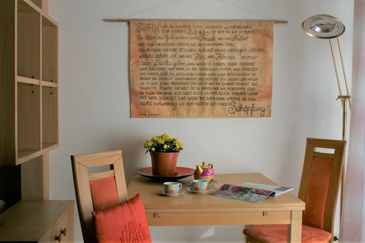 Unsere sehr geschmackvoll und gemütliche Erdgeschoss-Ferienwohnung verfügt über einen eigenen Eingang . Sehr ruhig am Ende einer Sackgasse und dennoch zentral gelegen. Parkmöglichkeit direkt vor dem Haus.