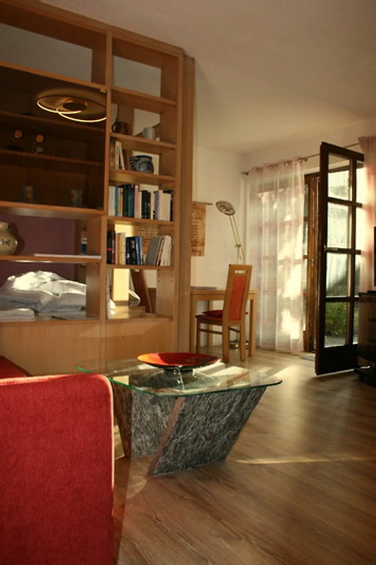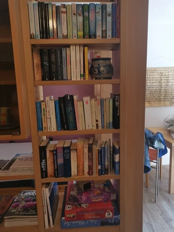 Im Wohnbereich steht Ihnen eine kleine, gut sortierte Bibliothek zur Verfügung, die auch mal über einen Regentag hinwegtröstet.