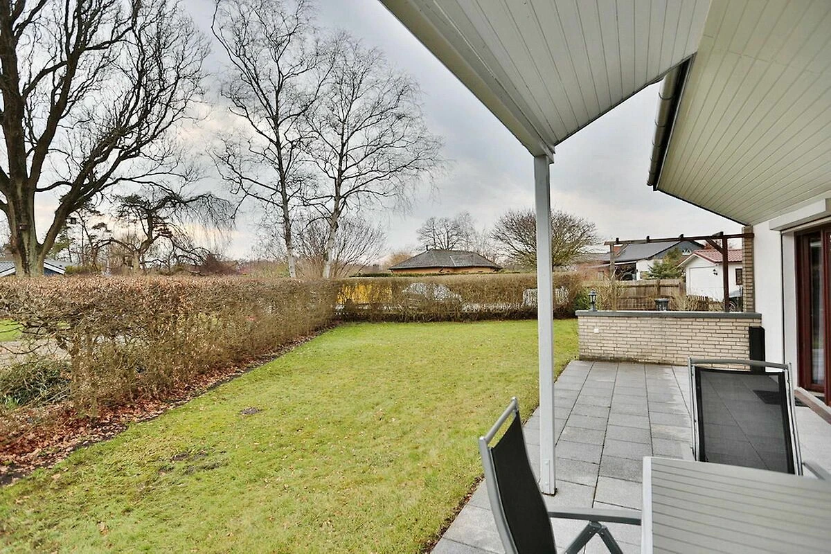 Vom Wohnbereich aus gelangen Sie auf die großzügige, zum Teil überdachte Terrasse und in den Garten.
